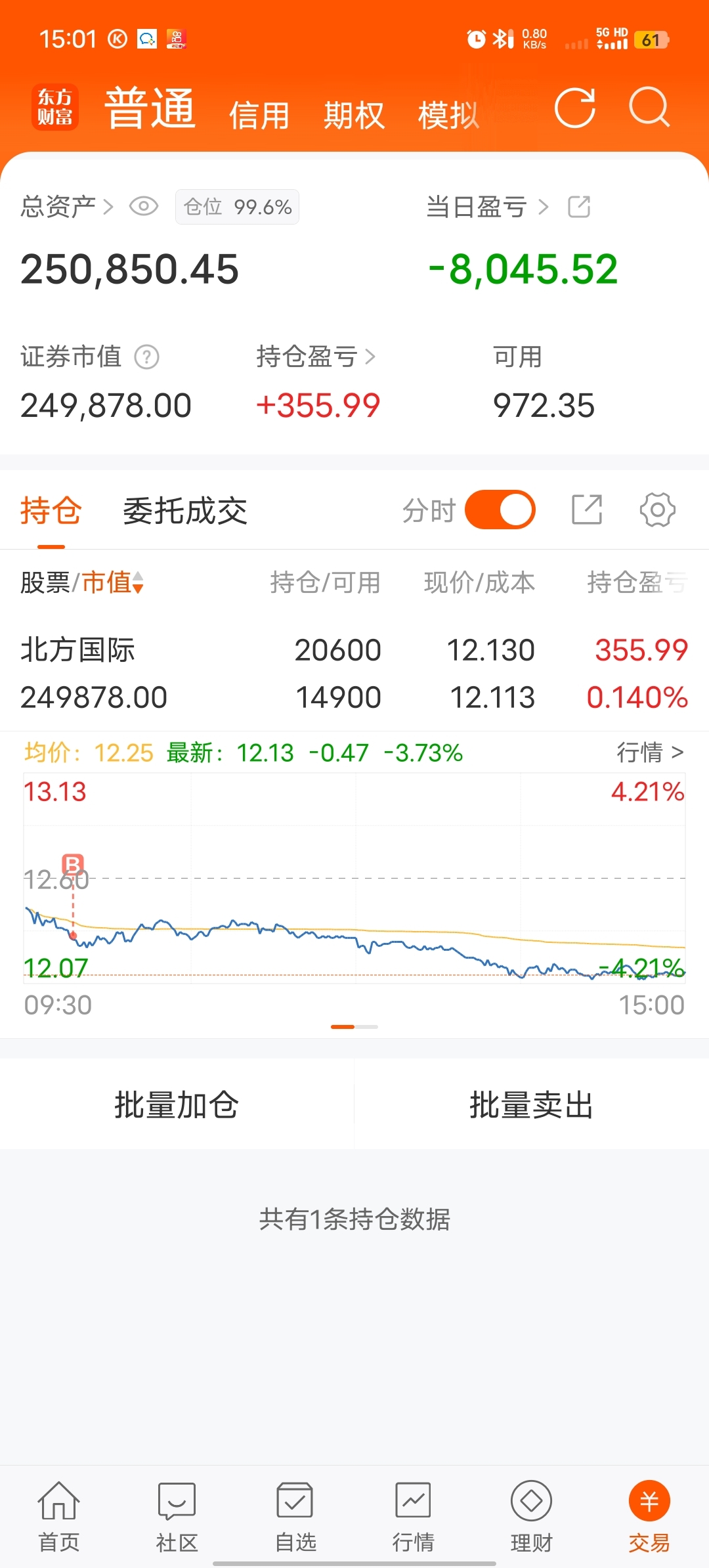 $北方国际(SZ000065)$ 直接打到我成本线了