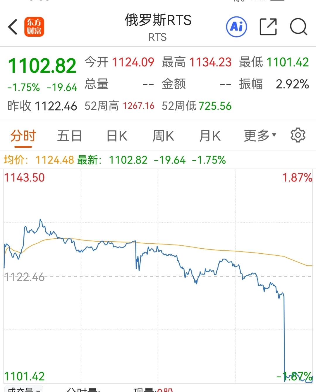 $北方国际(SZ000065)$ 俄罗斯大跌