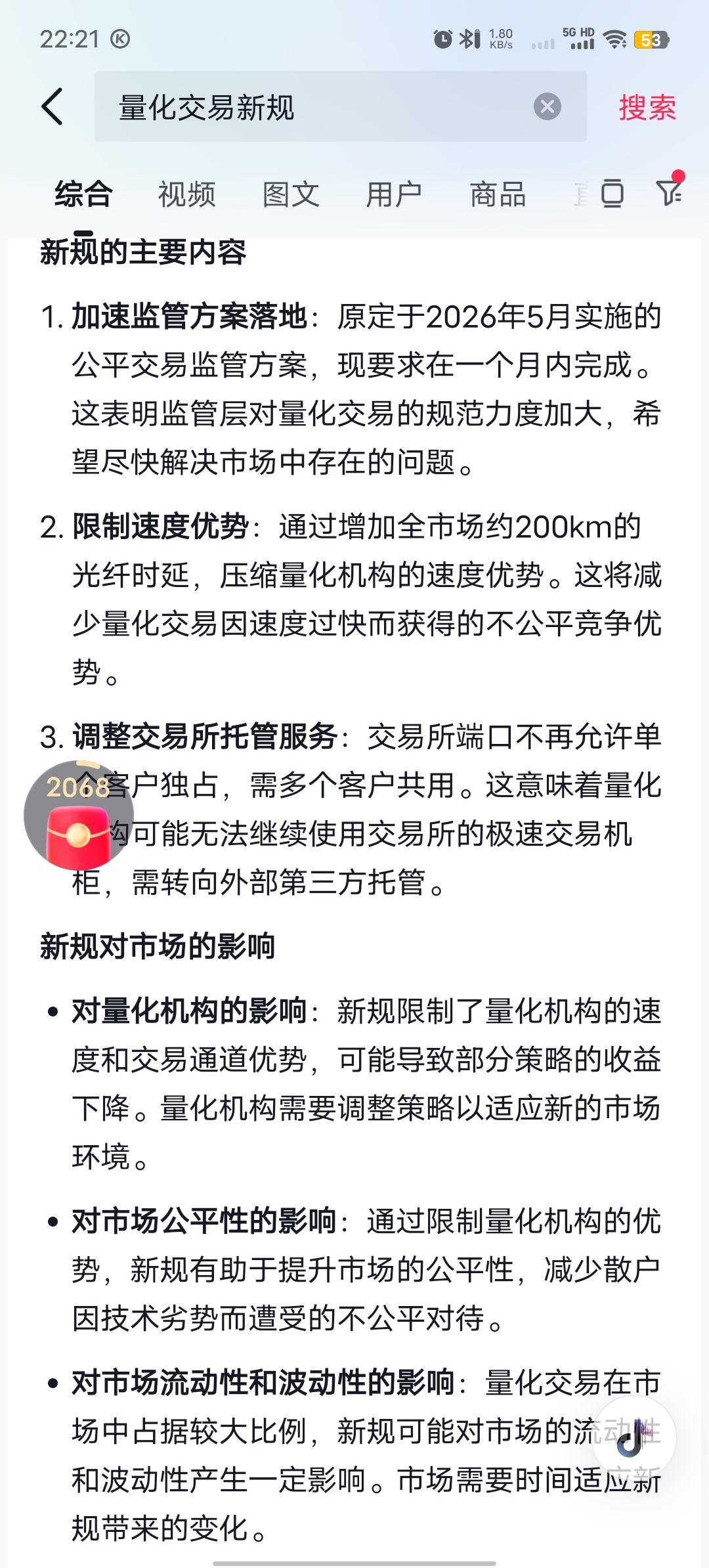 今天是量化砸盘,好像说量化新规提前了,这一个月内要出来,本来是26.6月出台
