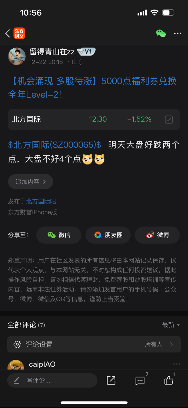 温馨提示: 1.根据《证券法》规定,禁止编造、传播虚假信息或者误导性信息,扰乱证券市场;2.用户在本社区发表的所有资料、言论等仅代表个人观点,与本网站立场无关,不对您构成任何投资建议。用户应基于自己的独立判断,自行决定证券投资并承担相应风险。《东方财富社区管理规定》