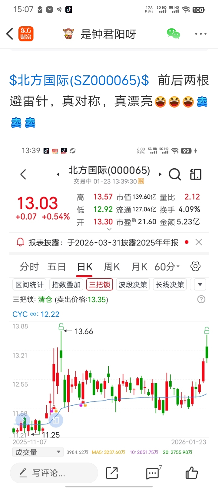 $北方国际(SZ000065)$ 那天避雷针清仓的,今天接回来,又可以坐等吃肉