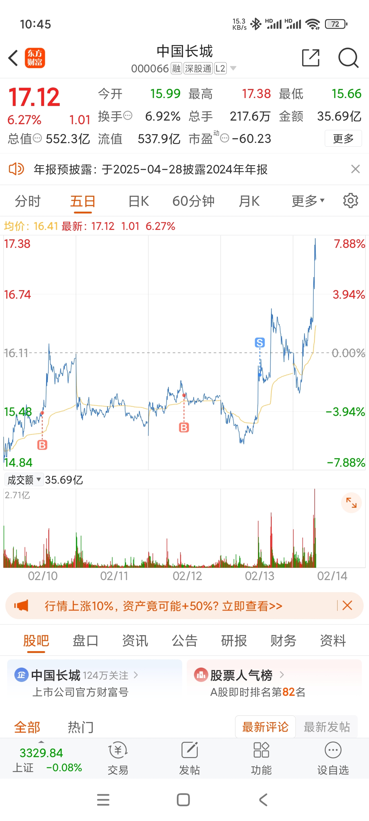 温馨提示: 1.根据《证券法》规定,禁止编造、传播虚假信息或者误导性信息,扰乱证券市场;2.用户在本社区发表的所有资料、言论等仅代表个人观点,与本网站立场无关,不对您构成任何投资建议。用户应基于自己的独立判断,自行决定证券投资并承担相应风险。《东方财富社区管理规定》