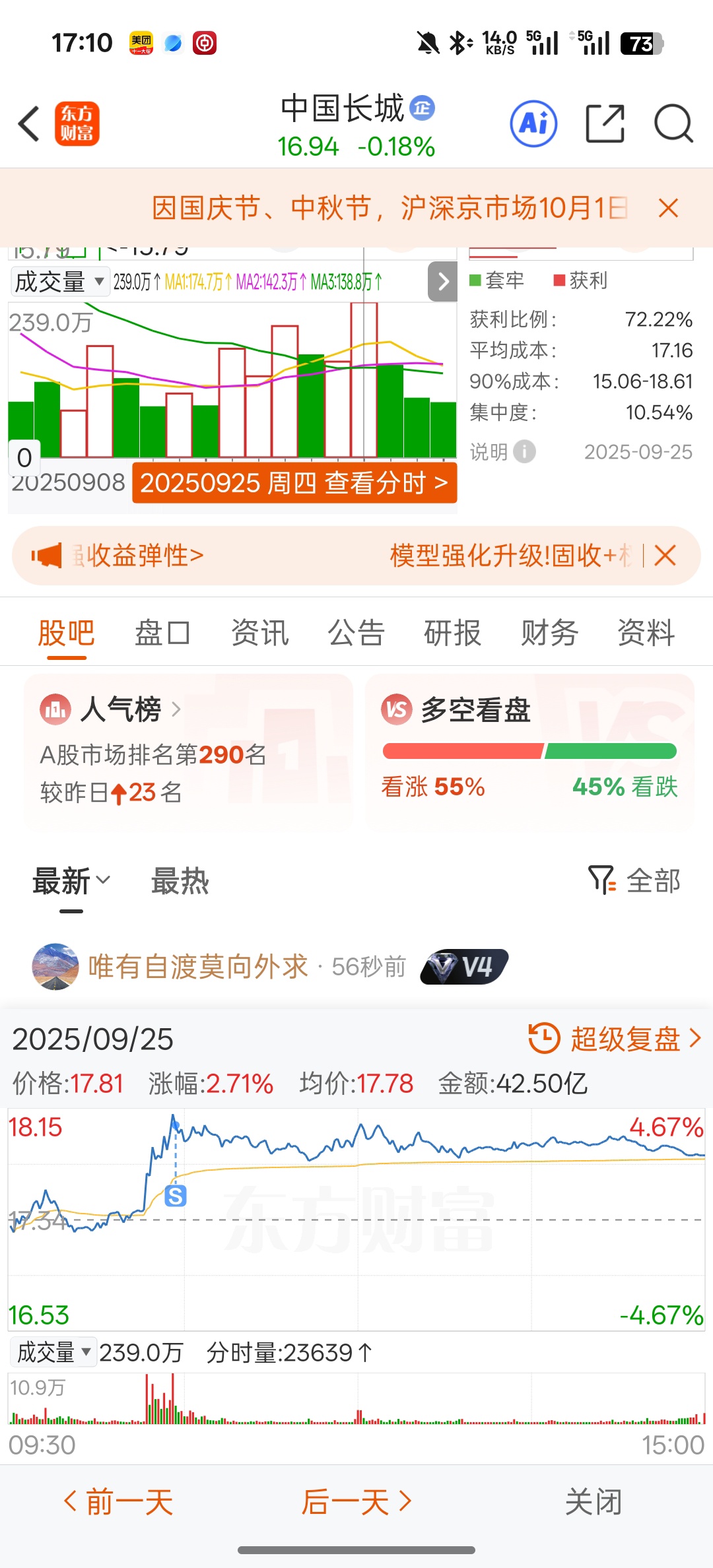 $中国长城(SZ000066)$ 不用感谢我在高点让你们跑了,因为这不止一次这么准了,至今长城一次没错过,看的懂我上周发的图也会知道今天16.7是个加仓点,只渡有缘人,