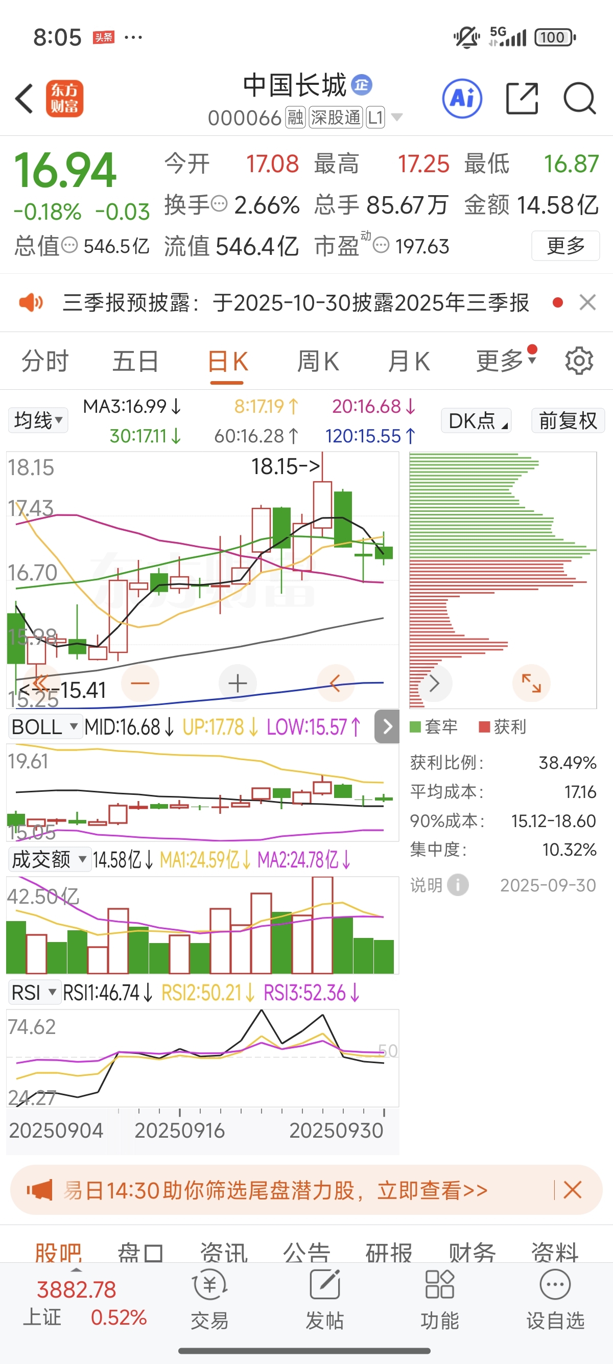 预测一下,今天上到17下到16.60,上个交易日没有到16.66,今天应该能看到