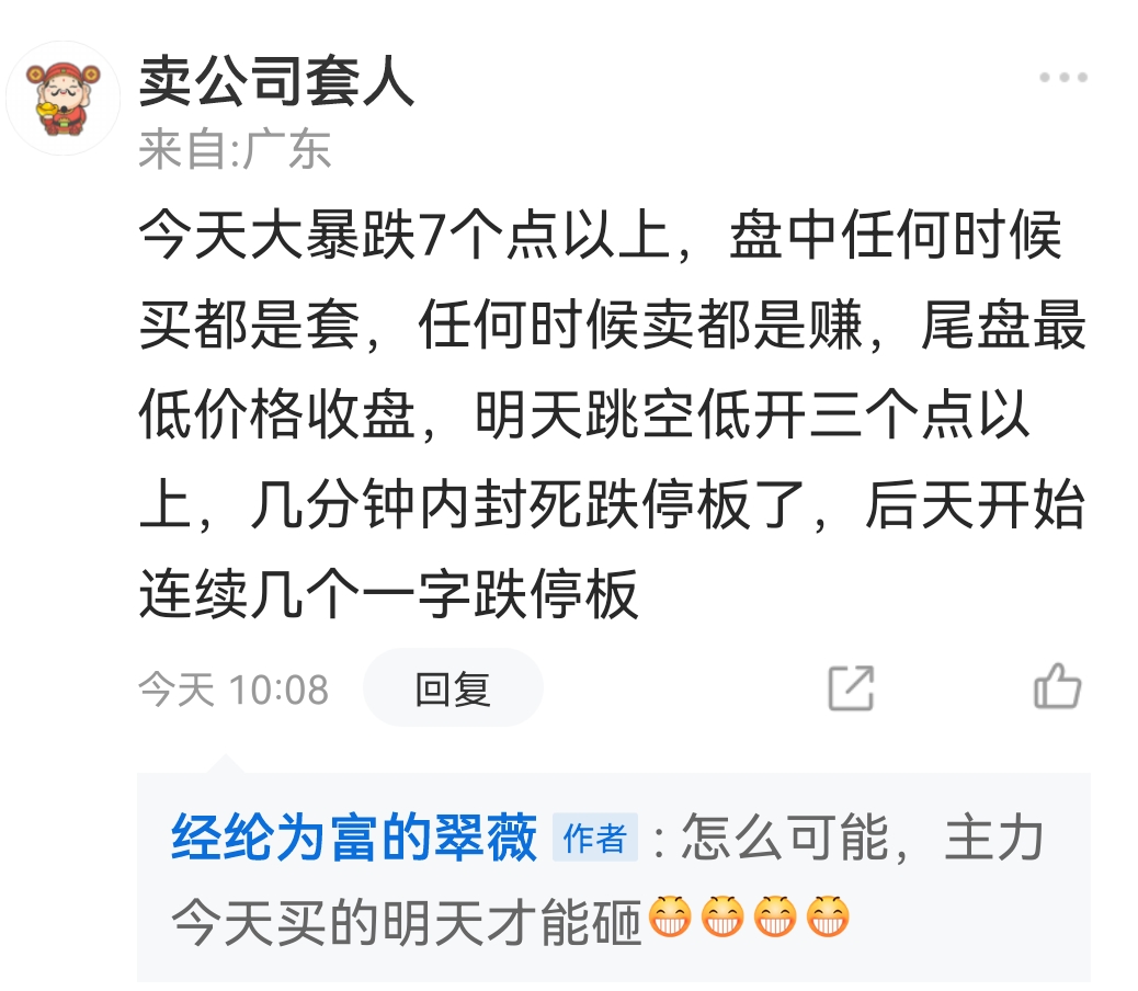 温馨提示: 1.根据《证券法》规定,禁止编造、传播虚假信息或者误导性信息,扰乱证券市场;2.用户在本社区发表的所有资料、言论等仅代表个人观点,与本网站立场无关,不对您构成任何投资建议。用户应基于自己的独立判断,自行决定证券投资并承担相应风险。《东方财富社区管理规定》