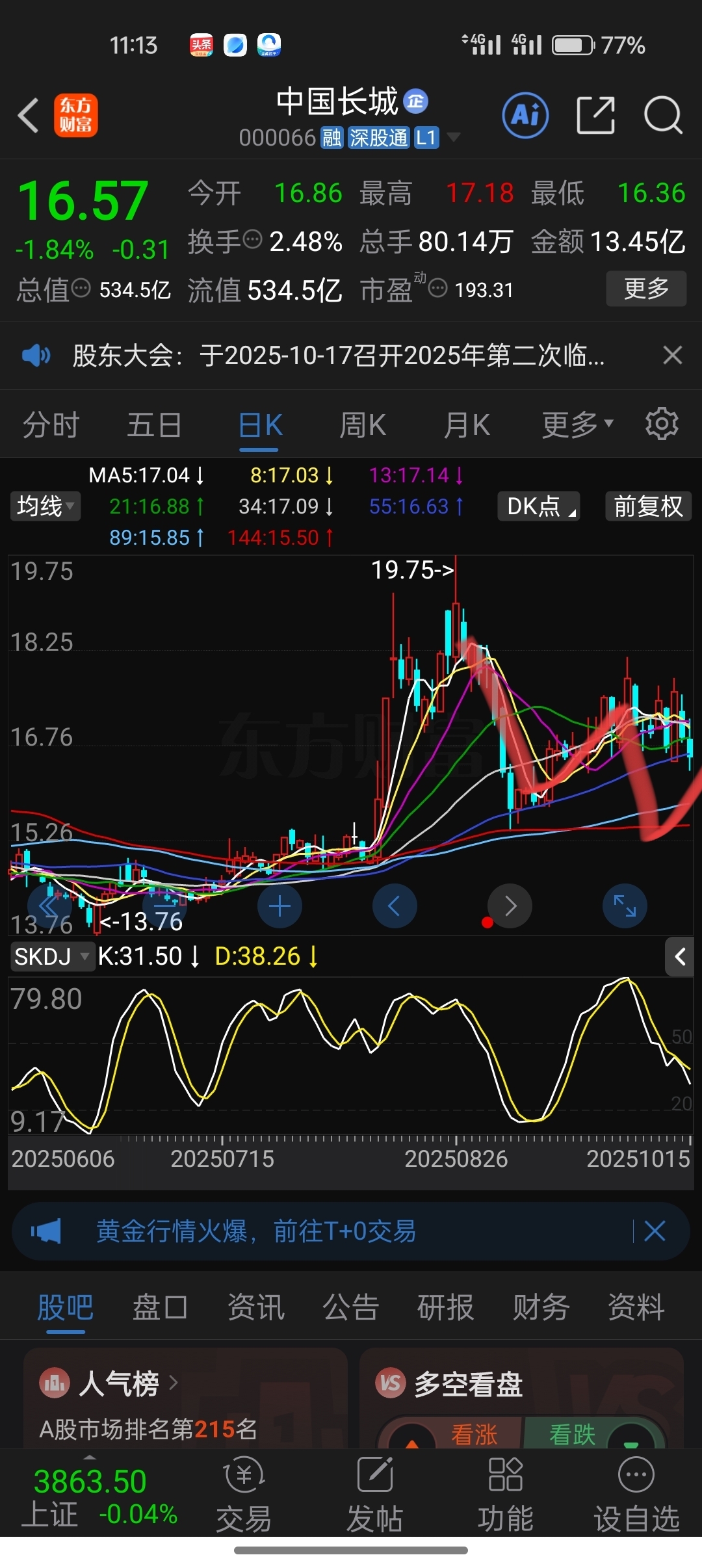 万里长城万里长做个W底才能飞翔,如果今天阴线收盘,破掉前天大阳线,此波回调目的地
