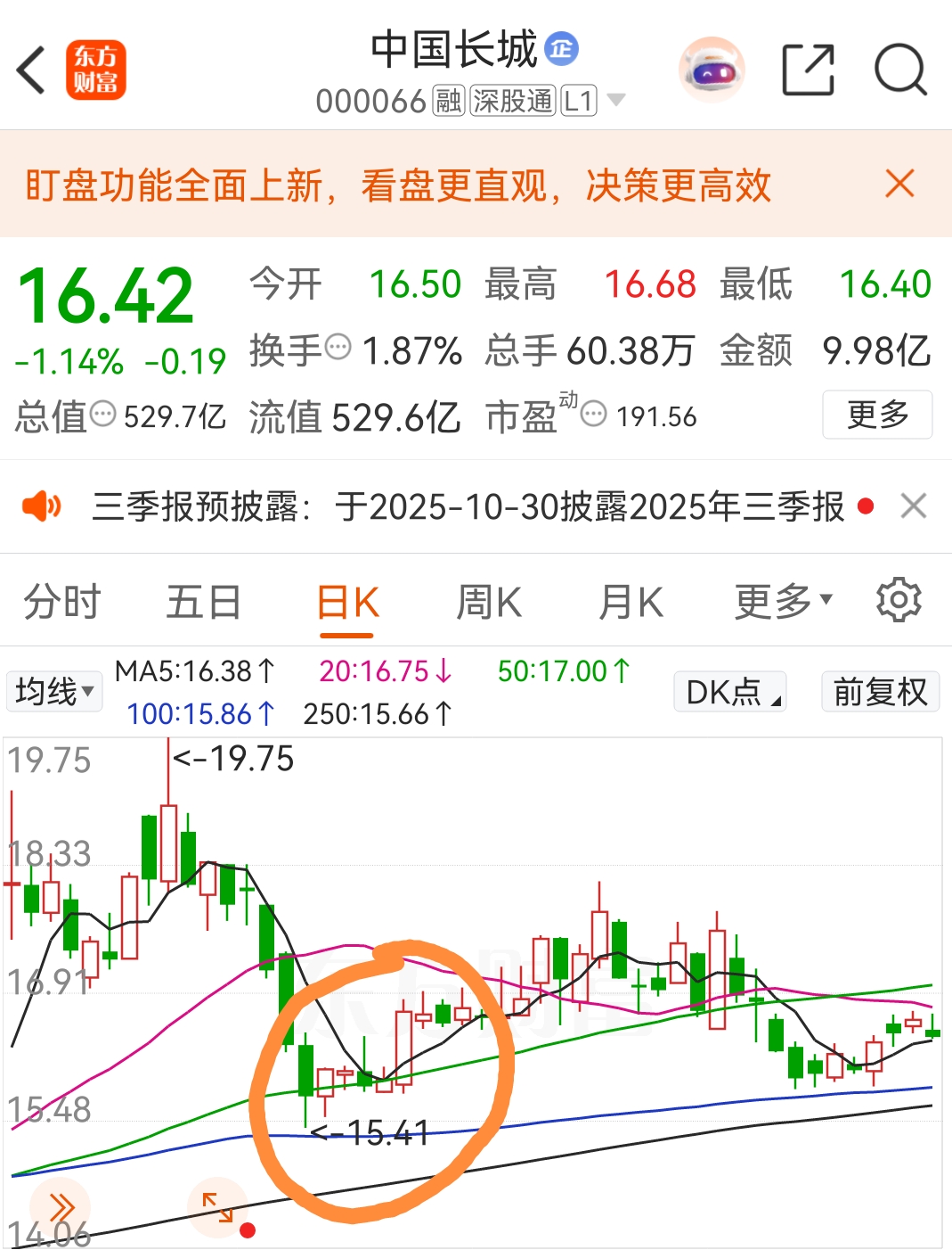 只要15.41不破,我就持股不动。只要破15.41.我就认亏,割肉离场!我就不相