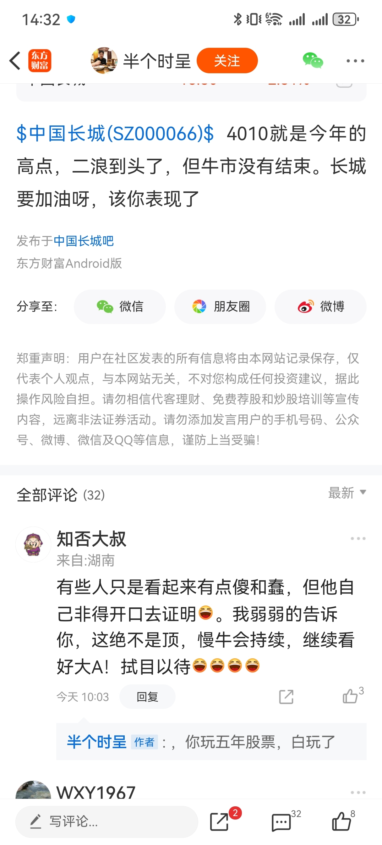 $中国长城(SZ000066)$ 发个贴来让长点记性。