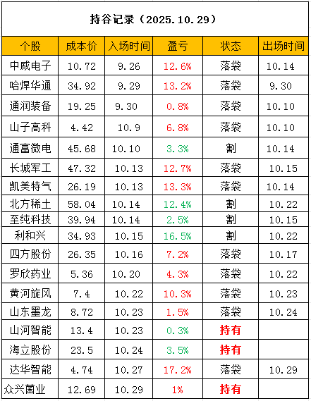 达华智能:计算机设备概念,今天小幅高开之后快速回调,但是可以看出,没有放量,仅仅只有一个三万手的空单,谷价砸到-3就止跌了,显然这是开磐的逼空,让大部分跟风磐做出过早止盈或者割肉的错误判断,老财早上就说了,今天要是不能封板,我才会考虑落袋,毕竟现在晋级五板以上的概率非常小,所以,下跌我倒时不急,只是老财看到后面的反弹拉升都摸不到板,于是选择快速落袋了。