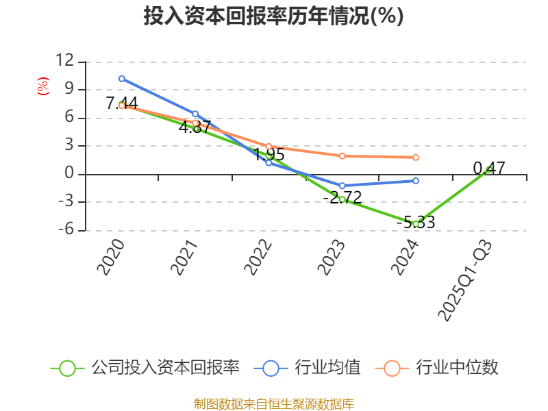 盈利能力方面, 2025年前三季度公司加权平均净资产收益率为0.15%,同比上升5.73个百分点。公司2025年前三季度投入资本回报率为0.47%,较上年同期上升2.38个百分点。
