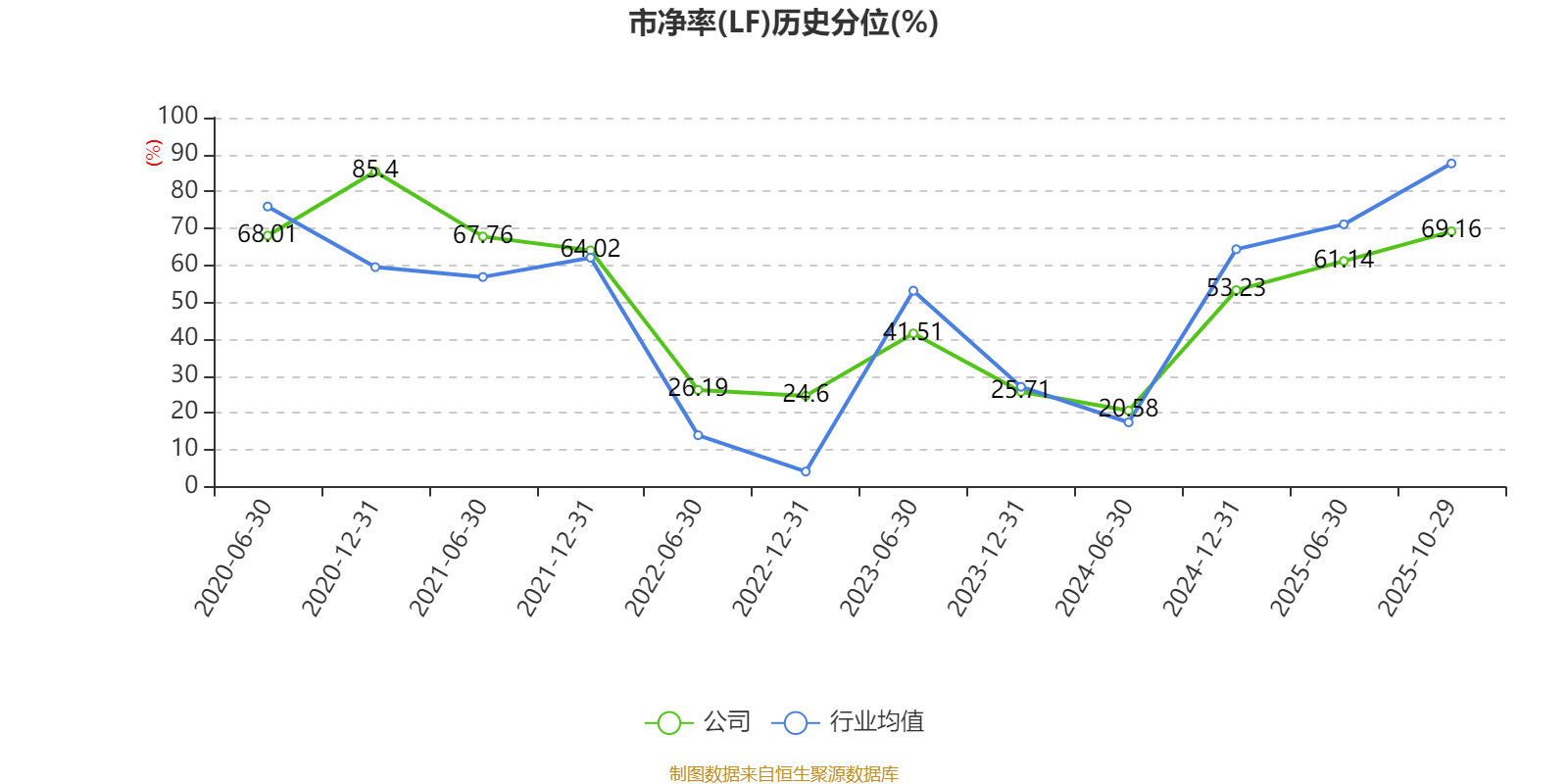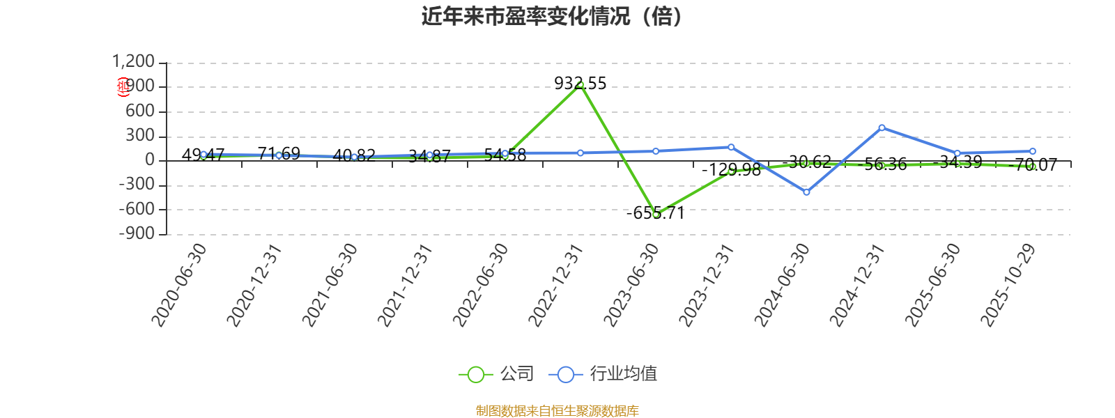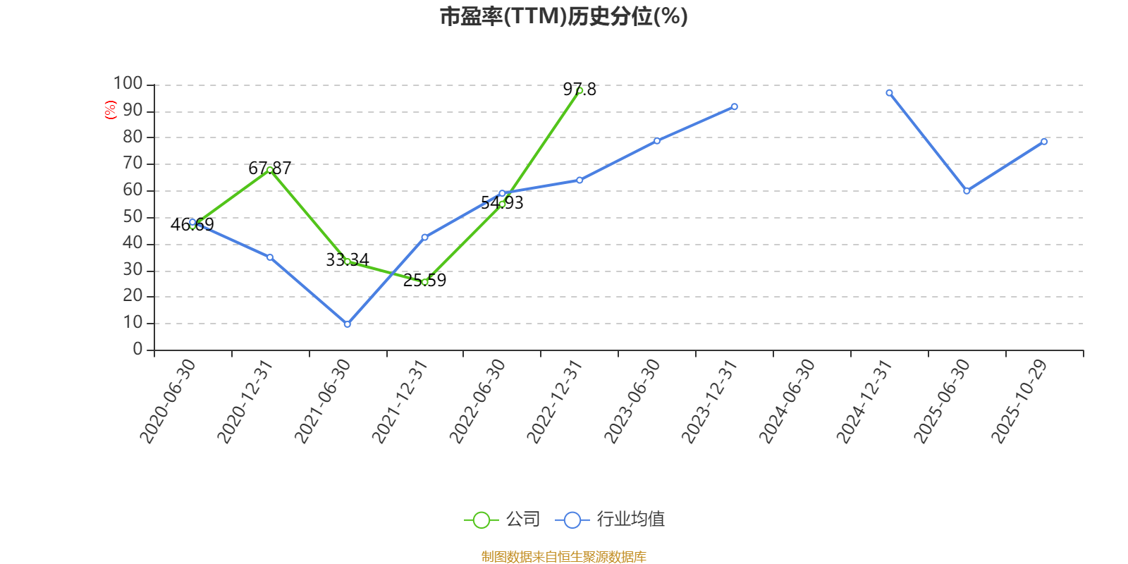 市盈率、市净率为负时,不显示当期分位数,会导致折线图中断。