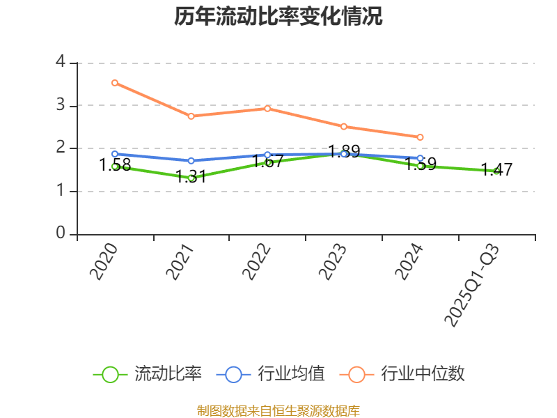 2025年前三季度,公司流动比率为1.47,速动比率为0.95。