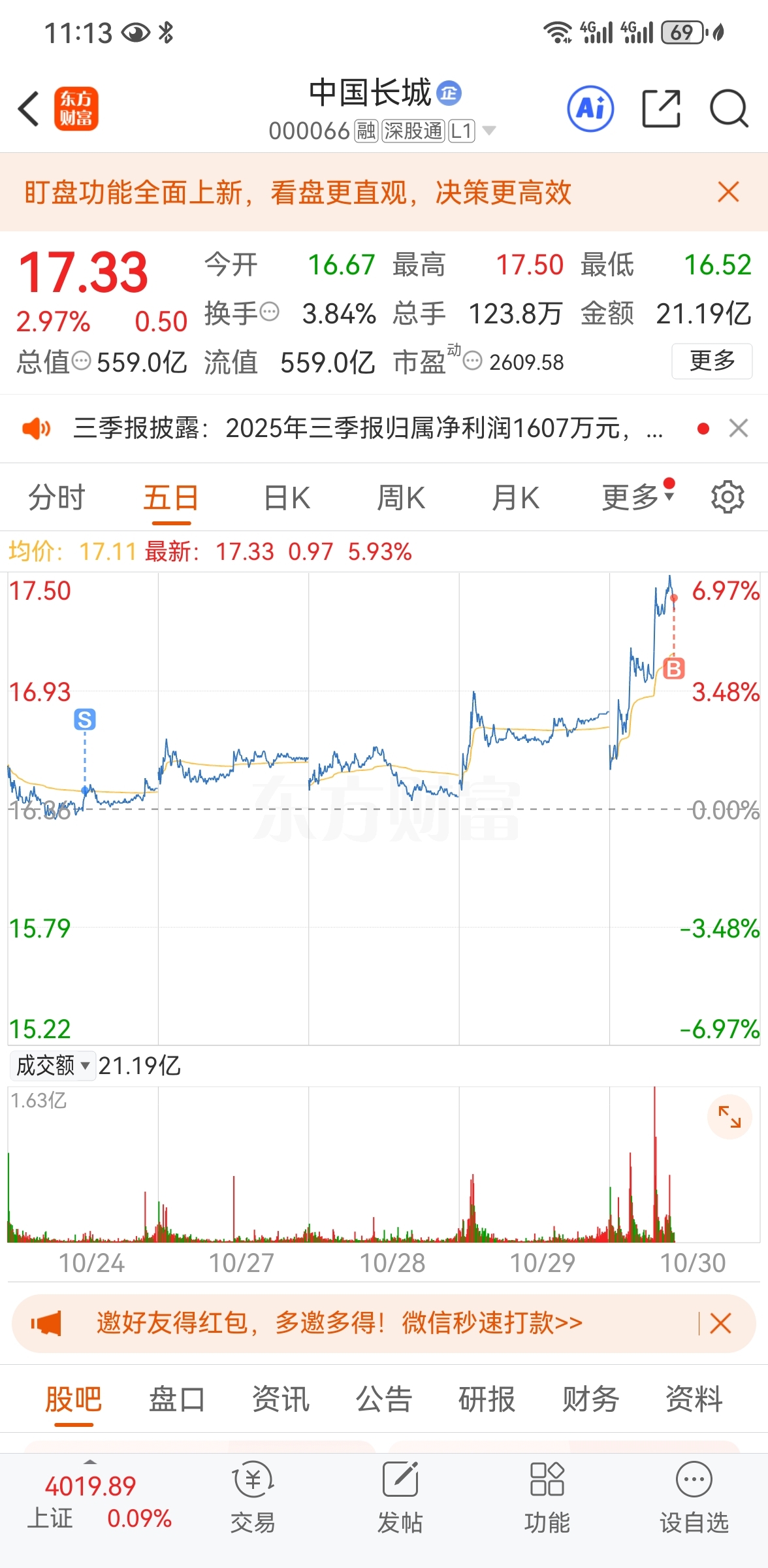 $中国长城(SZ000066)$ 卖弄成买了,悲催