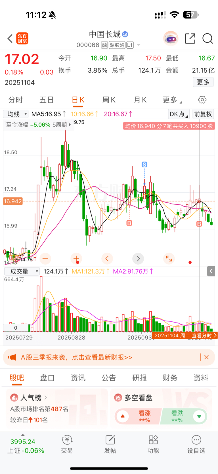 $中国长城(SZ000066)$ 好了,现在知道了,11月4日是拉升出货,不是试盘,被套了,完了
