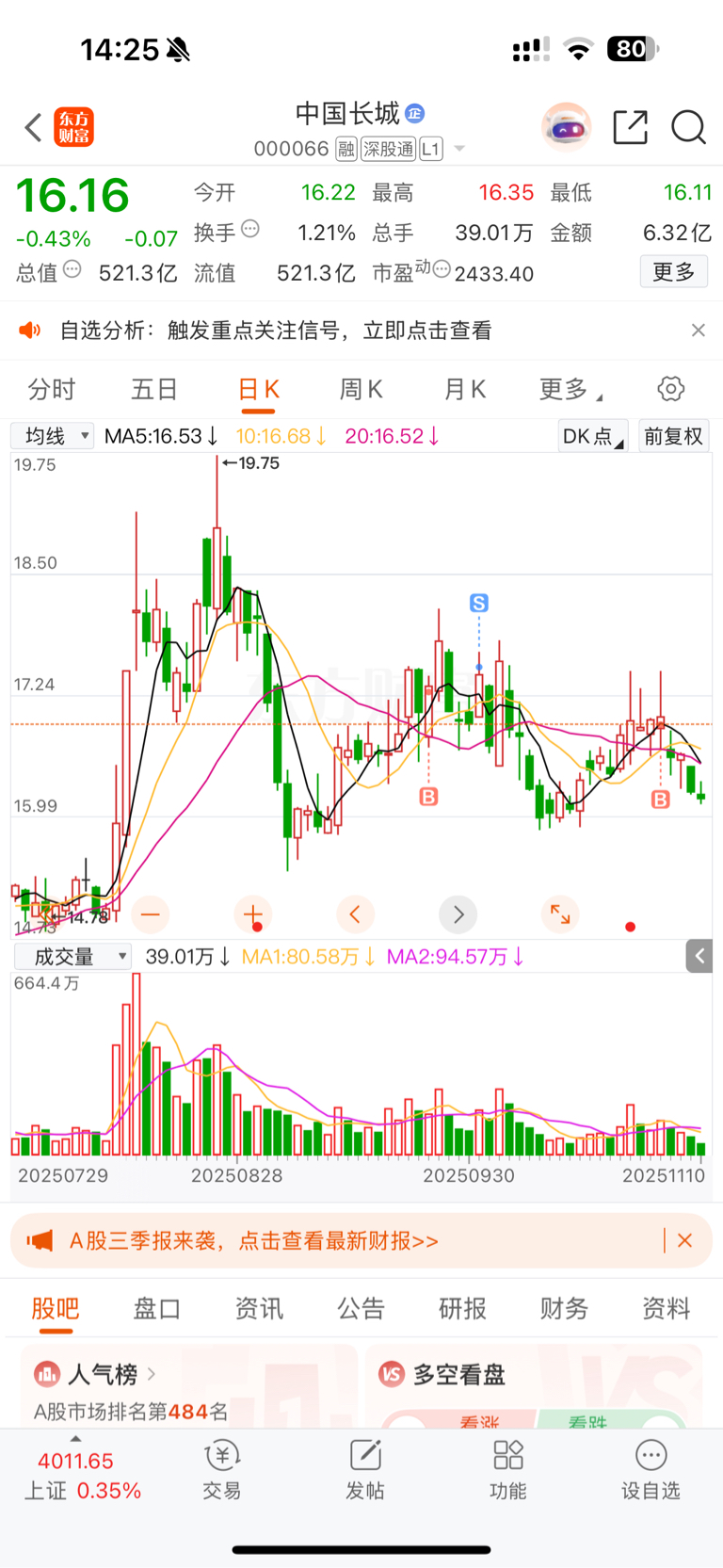 $中国长城(SZ000066)$ 目前板块切换,科技下跌,说不好,他其实已经翻倍了这波行情,看不到希望,切换风格,科技不行了