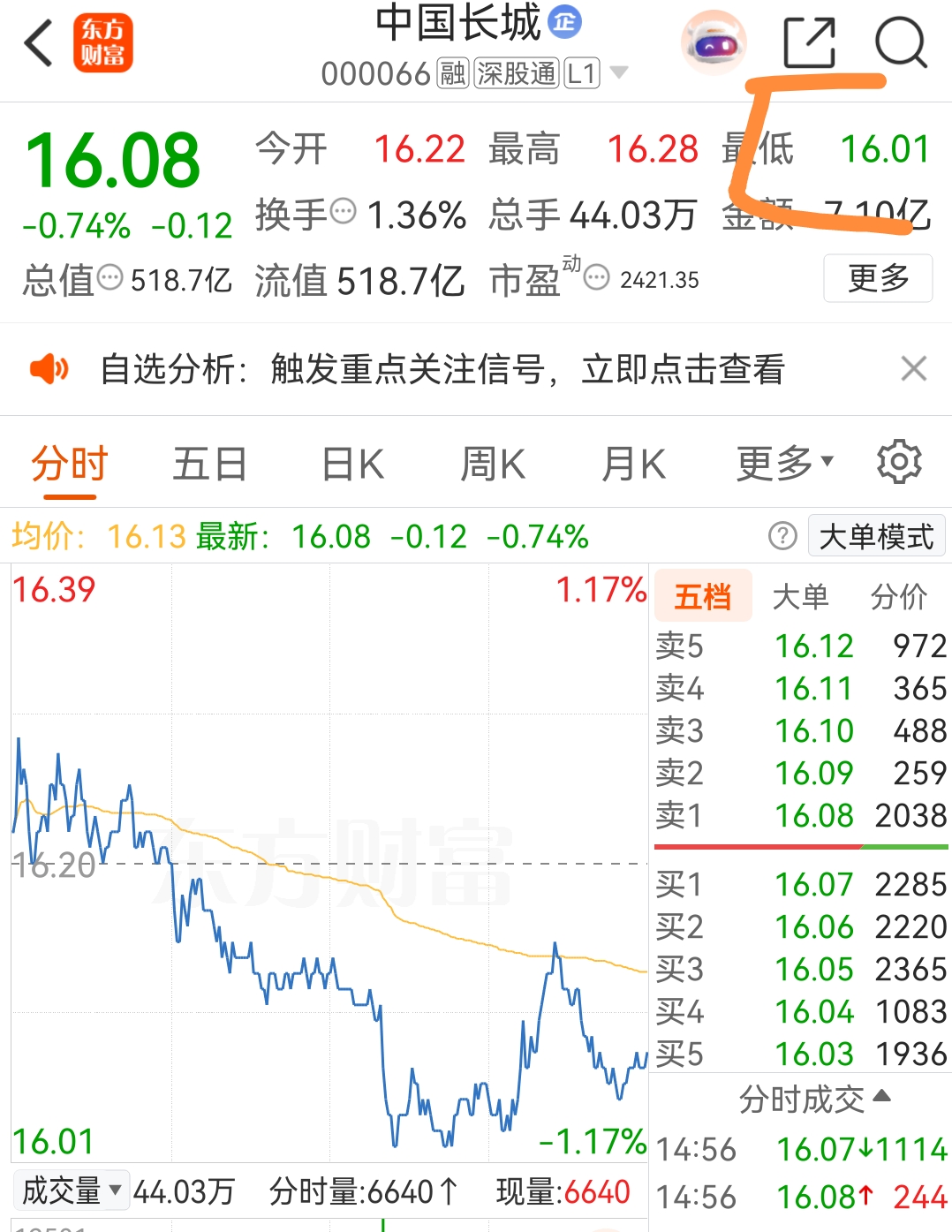 支撑逻辑:一旦股价跌近成本线,主力为了不让自己亏损,会竭尽全力“护盘”,阻止股价进一步下跌。因此,16元形成了一个强大的支撑位。这就是主力昨天在16.01快速拉起的原因!