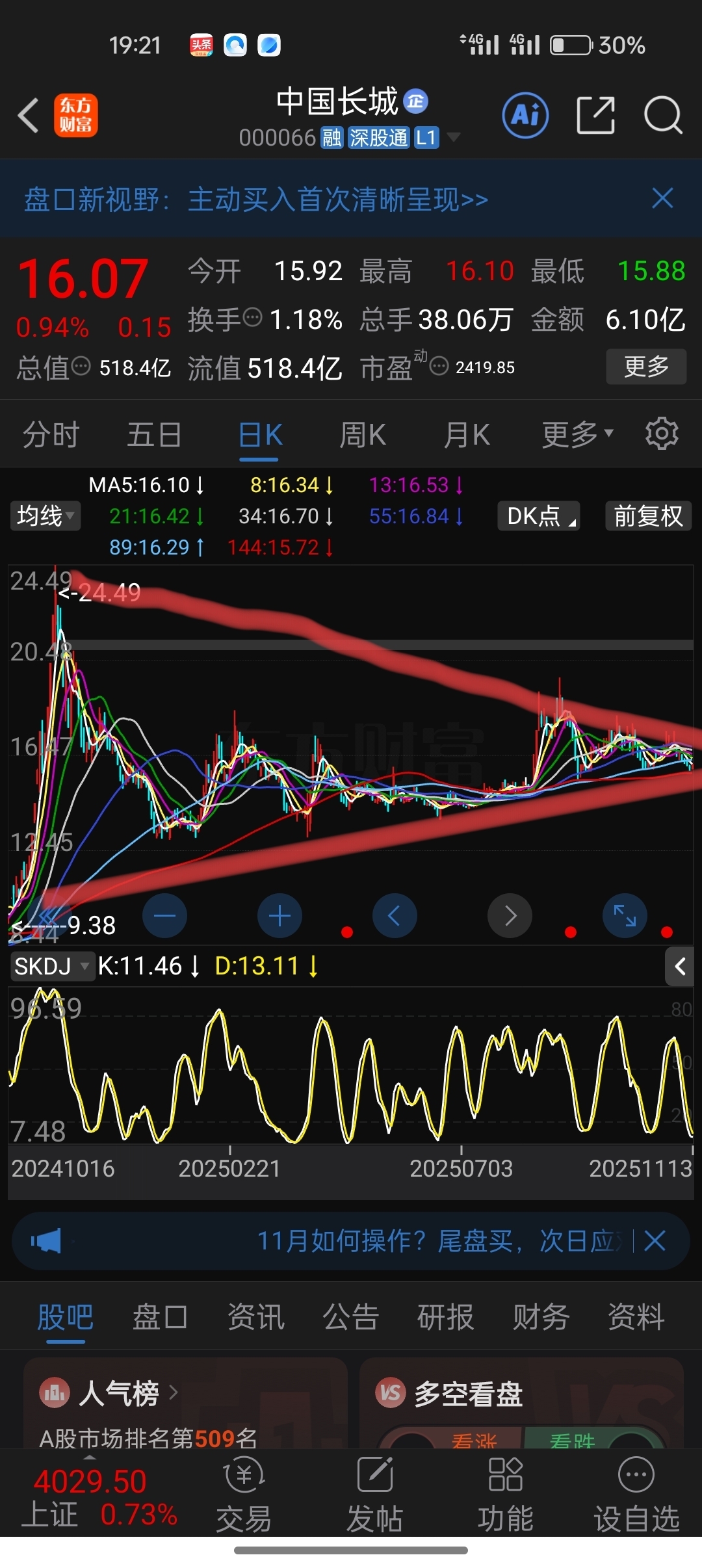 $中国长城(SZ000066)$ 我对中国长城的几点看法,去年24高点到现在已经走出收敛性窄幅震荡,突破就在最近,必然向上,拿住了!
