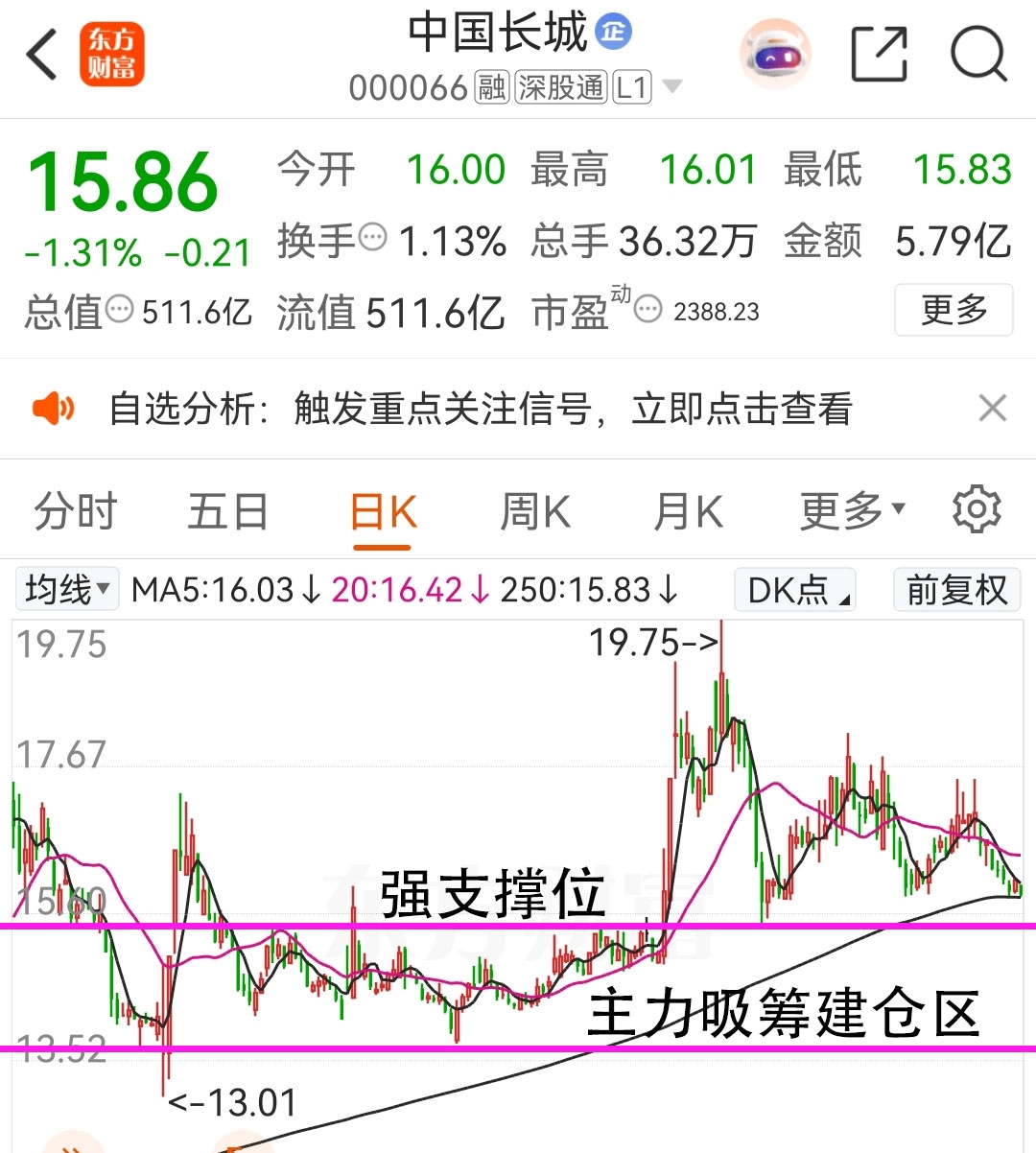 满仓长城,不破16坚决持股,股价下方是主力成本区。我跟着主力建仓,坐等拉升,不破