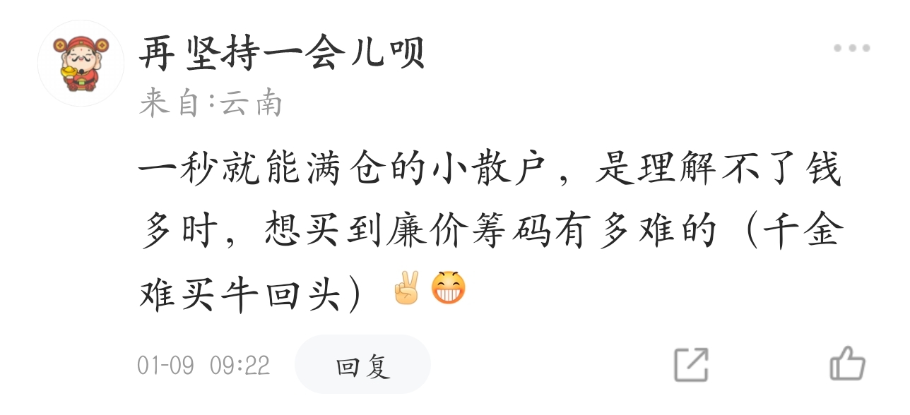 温馨提示: 1.根据《证券法》规定,禁止编造、传播虚假信息或者误导性信息,扰乱证券市场;2.用户在本社区发表的所有资料、言论等仅代表个人观点,与本网站立场无关,不对您构成任何投资建议。用户应基于自己的独立判断,自行决定证券投资并承担相应风险。《东方财富社区管理规定》