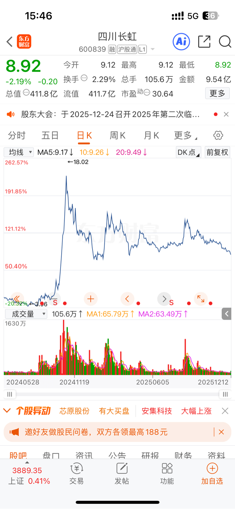 $中国长城(SZ000066)$ 跟长虹一摸一样的走势,尾盘都一样