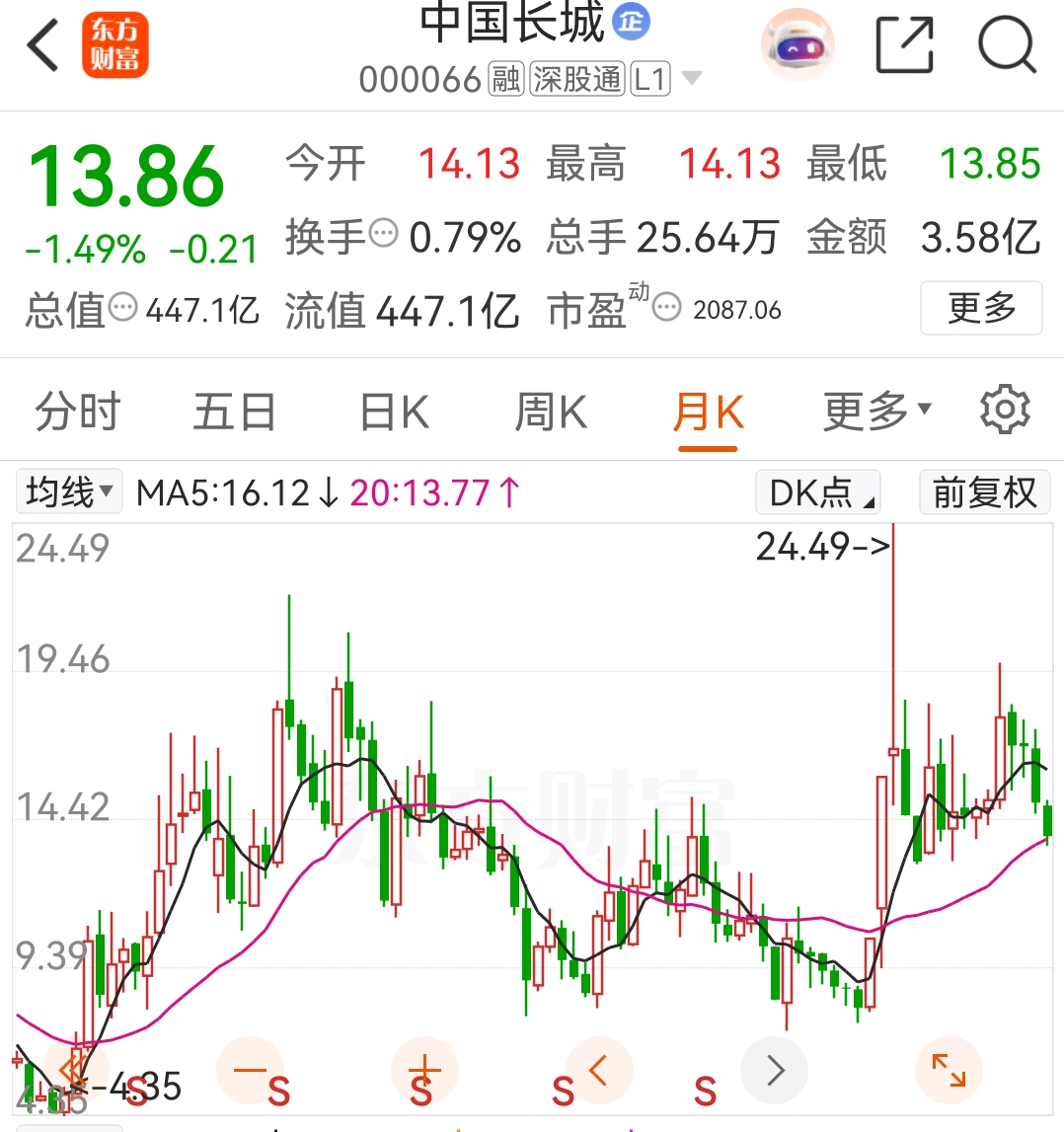 20月均线13.77.最强支撑!!!