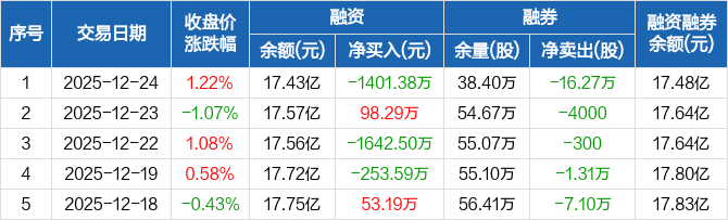 中国长城:融资净偿还1401.38万元,融资余额17.43亿元(12-24)