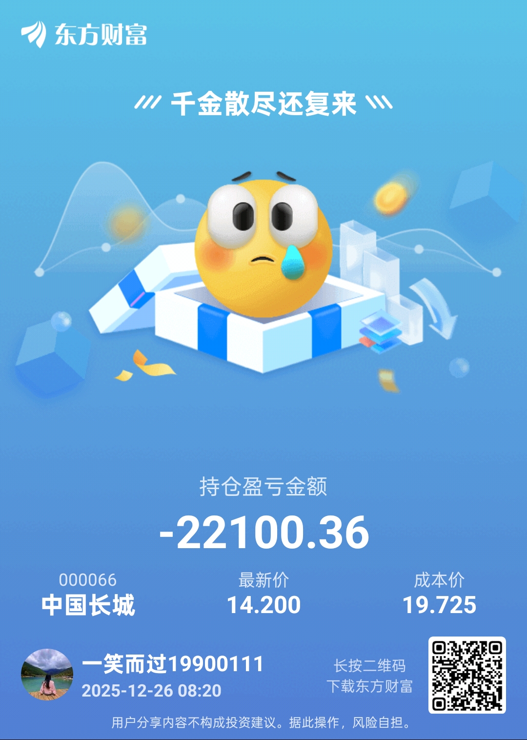 温馨提示: 1.根据《证券法》规定,禁止编造、传播虚假信息或者误导性信息,扰乱证券市场;2.用户在本社区发表的所有资料、言论等仅代表个人观点,与本网站立场无关,不对您构成任何投资建议。用户应基于自己的独立判断,自行决定证券投资并承担相应风险。《东方财富社区管理规定》