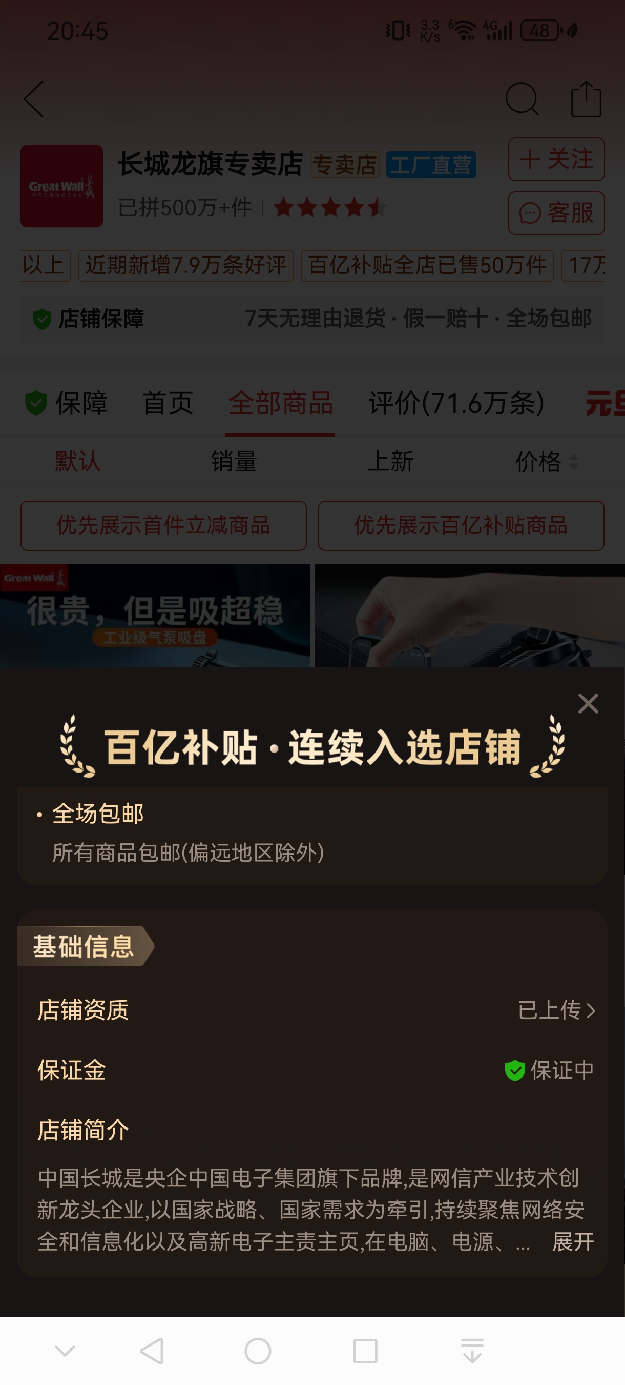 长城在拼多多上有门店,小商品丰富