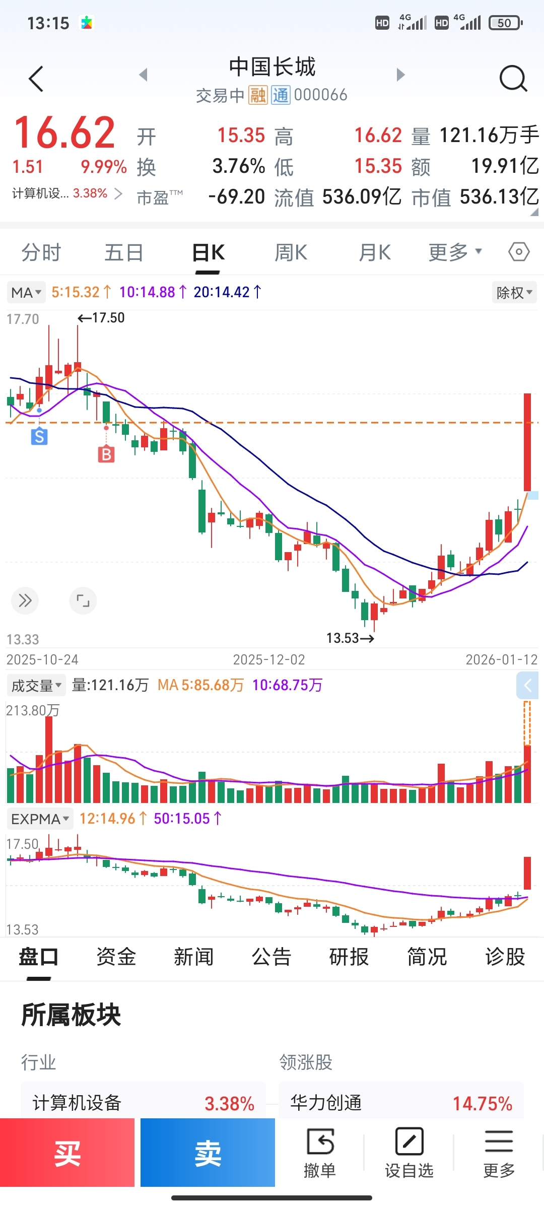 $中国长城(SZ000066)$ 套牢几个月,今天莫名就涨了