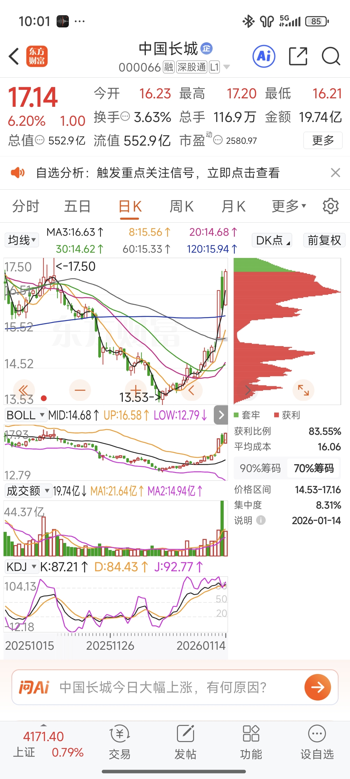 17.20到17.80之间可以卖掉出去,不要想着它一下子就上去了,还会回踩的,个