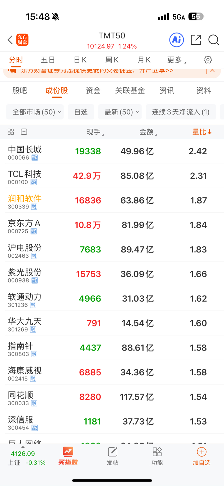 TMT50大哥股继续看到25,今天被压盘,有量就有戏