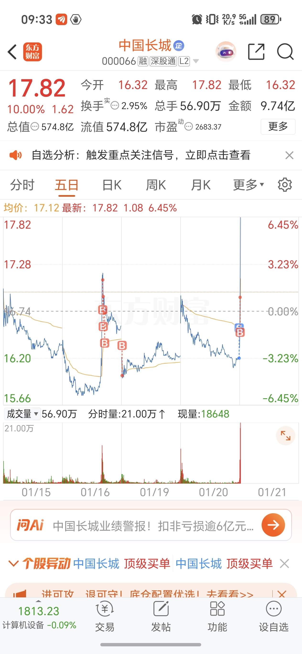 昨天满仓减了四分之一的仓位,今天就啦涨停。我竞价挂低了没接回来