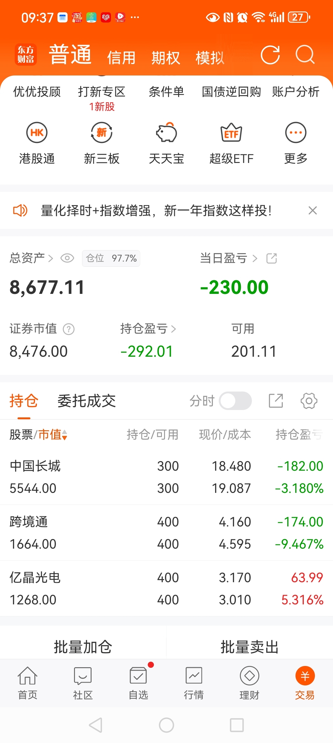 一万实盘第11天,一步错步步错,错过了金风买了你。本金又少了。