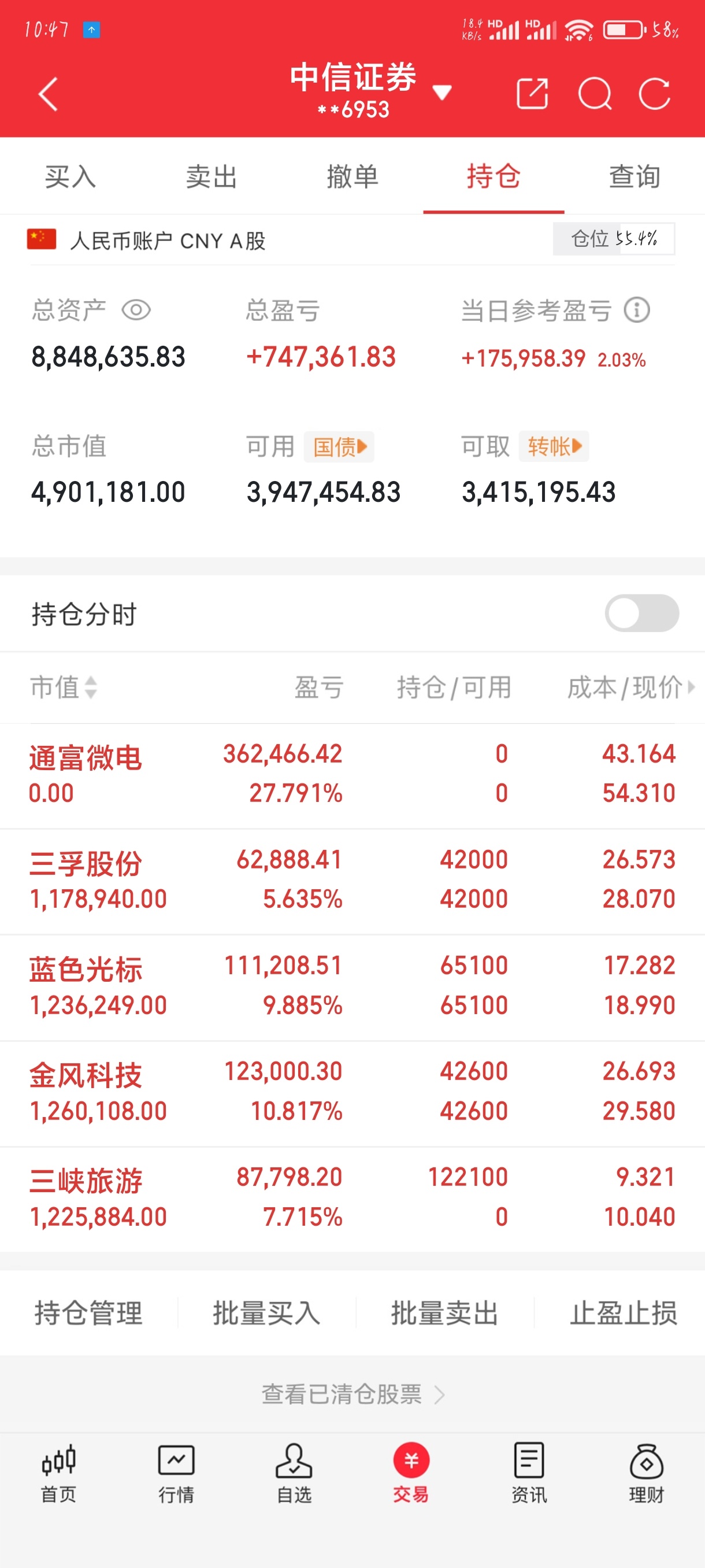 大家上午好,来更新一下今日持仓布局!今日给给止盈出局了27cm到手了三孚股份和蓝