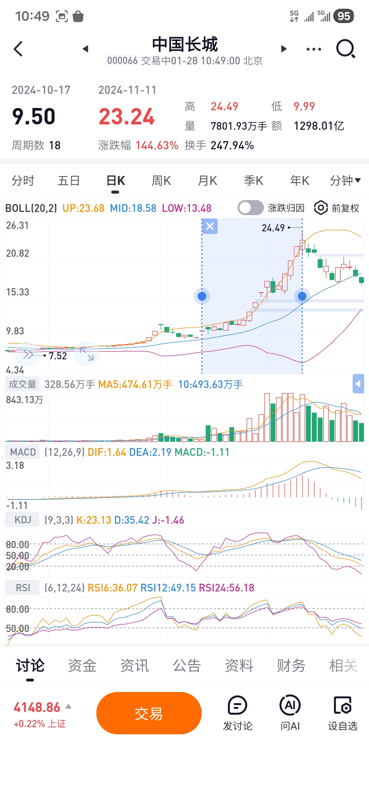 中国长城在第二个涨停减了1/4仓位,勉强保持不亏,上次这样A杀还是2024年10