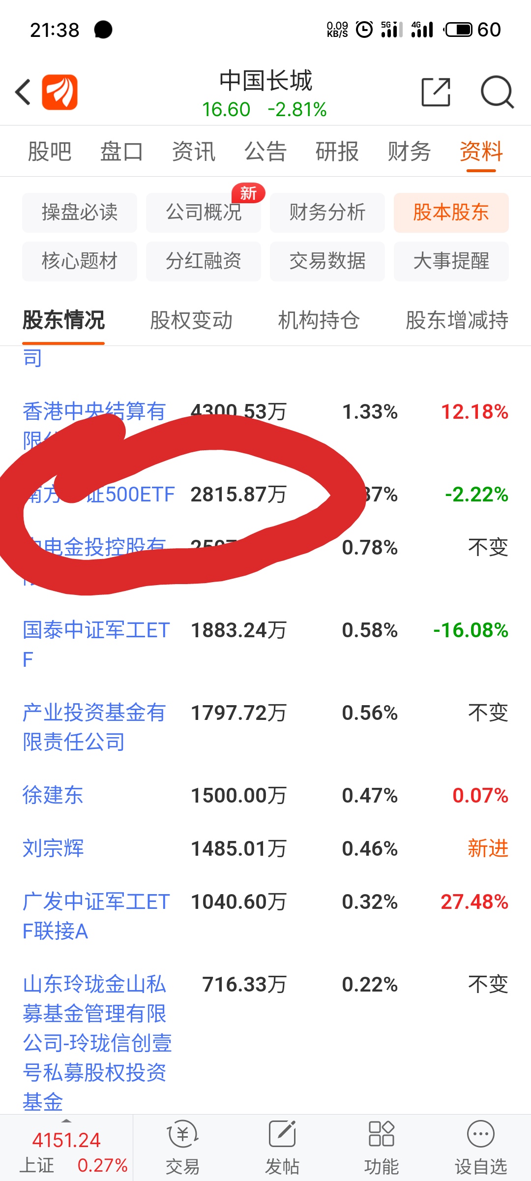 长城军工之前很看好后后面会起来,所以虽然亏了很多但是一直格局,今天偶然发现手上两