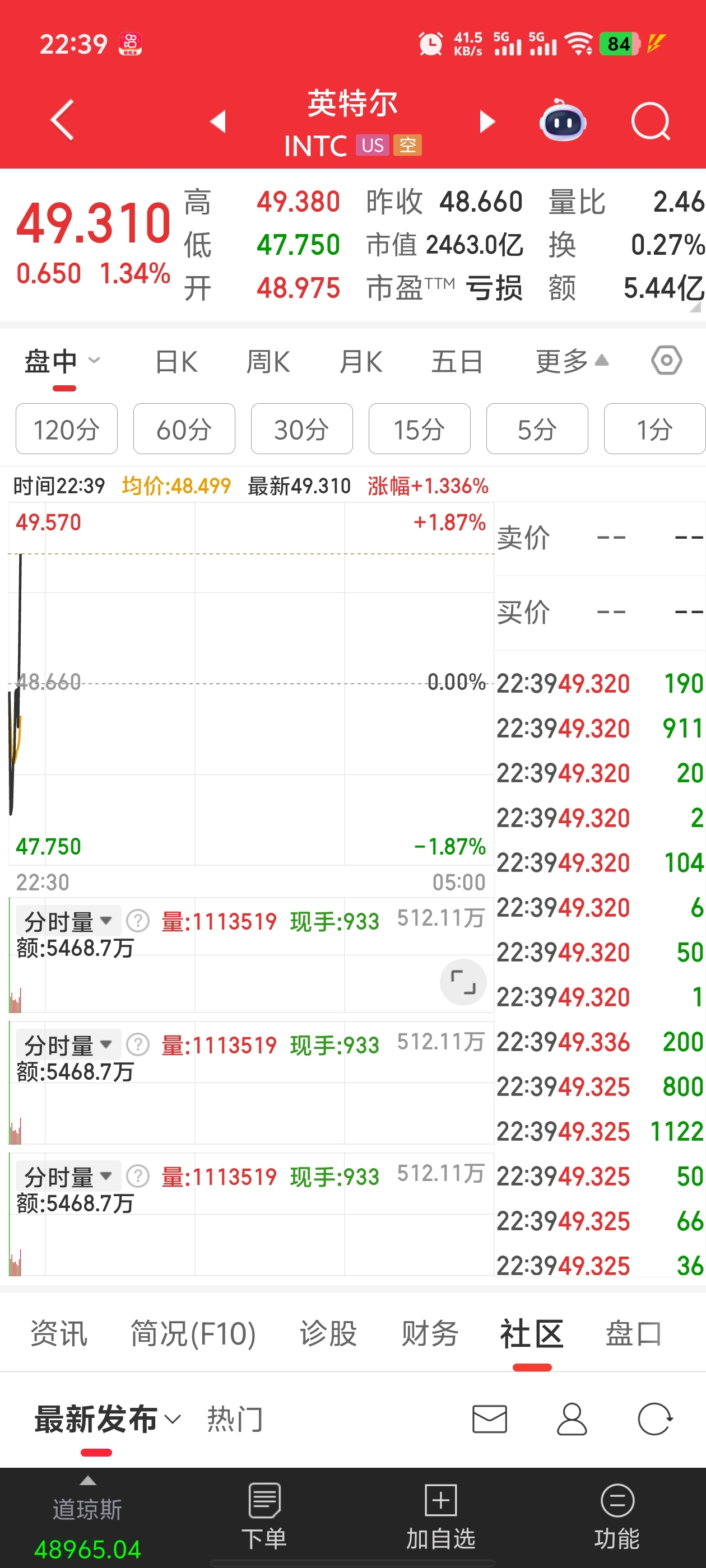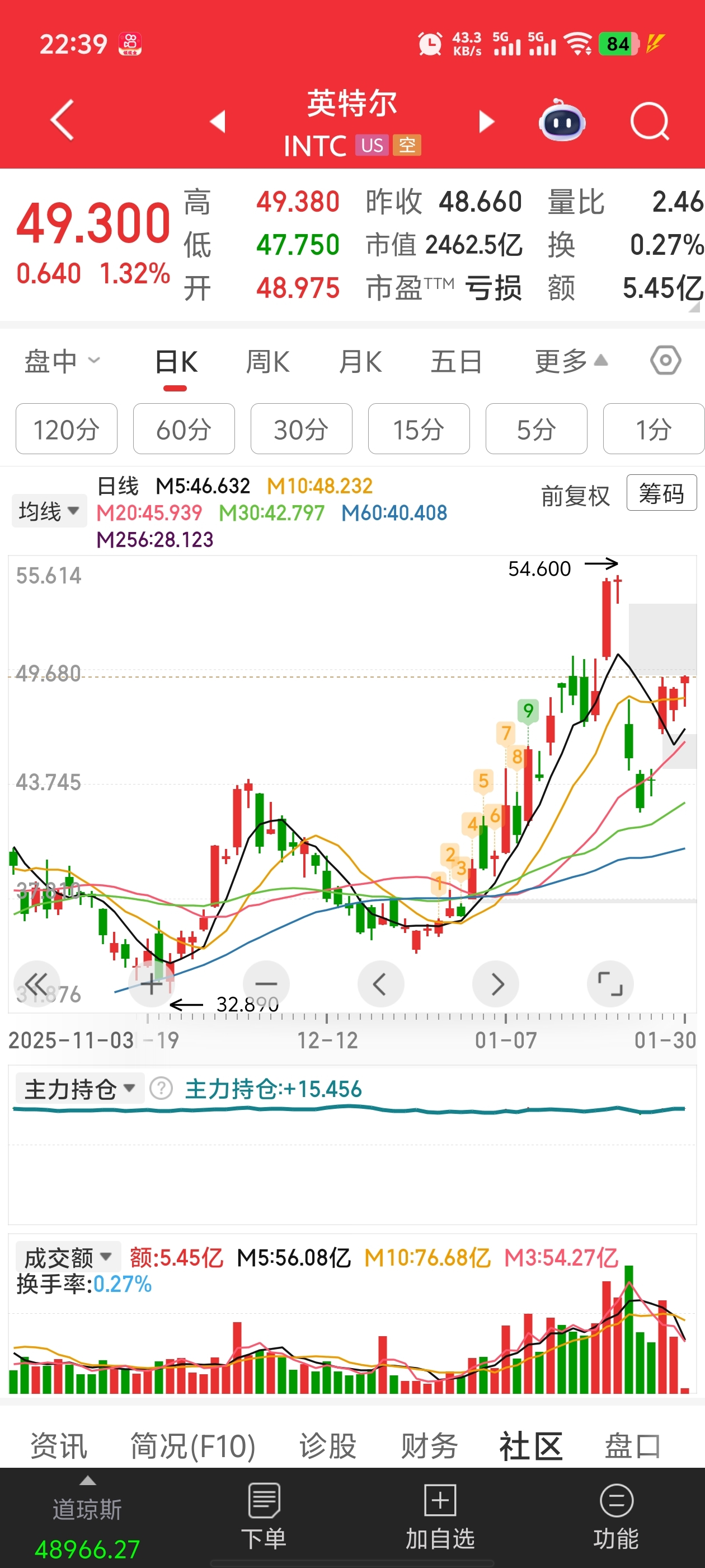 英特尔都反弹十几个点要反包了。