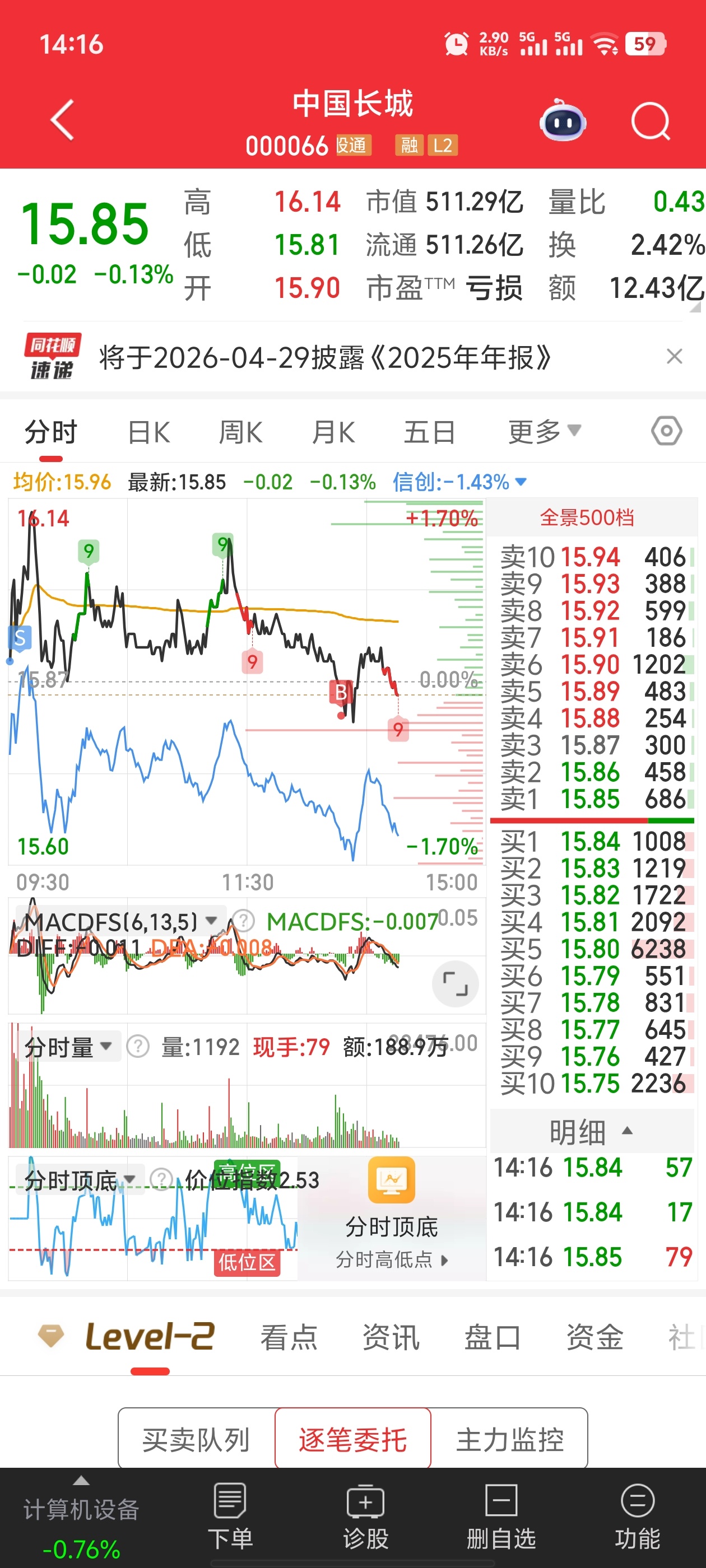 $中国长城(SZ000066)$ 随你怎么玩吧不动了,早上动了下就差点飞了。