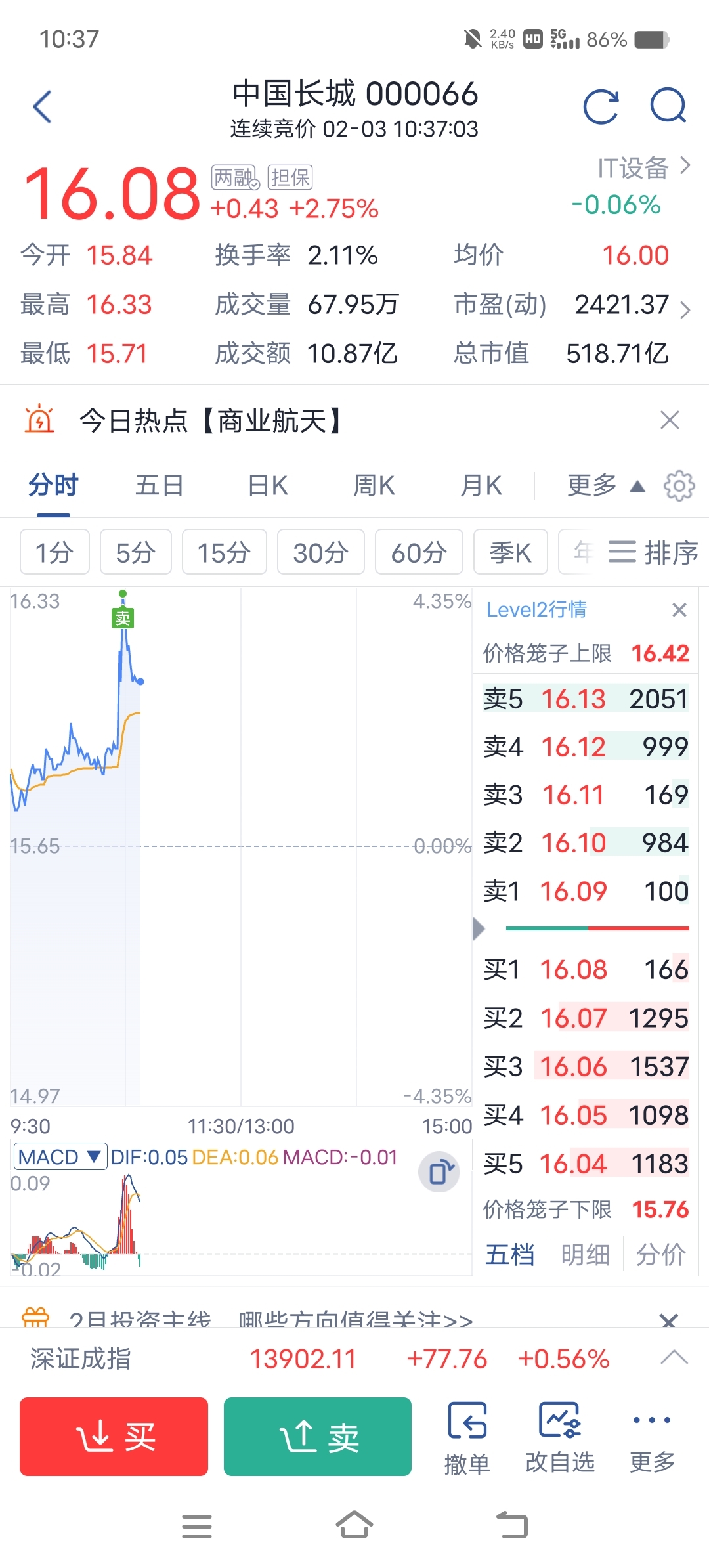$中国长城(SZ000066)$ 就是卖,太弱了