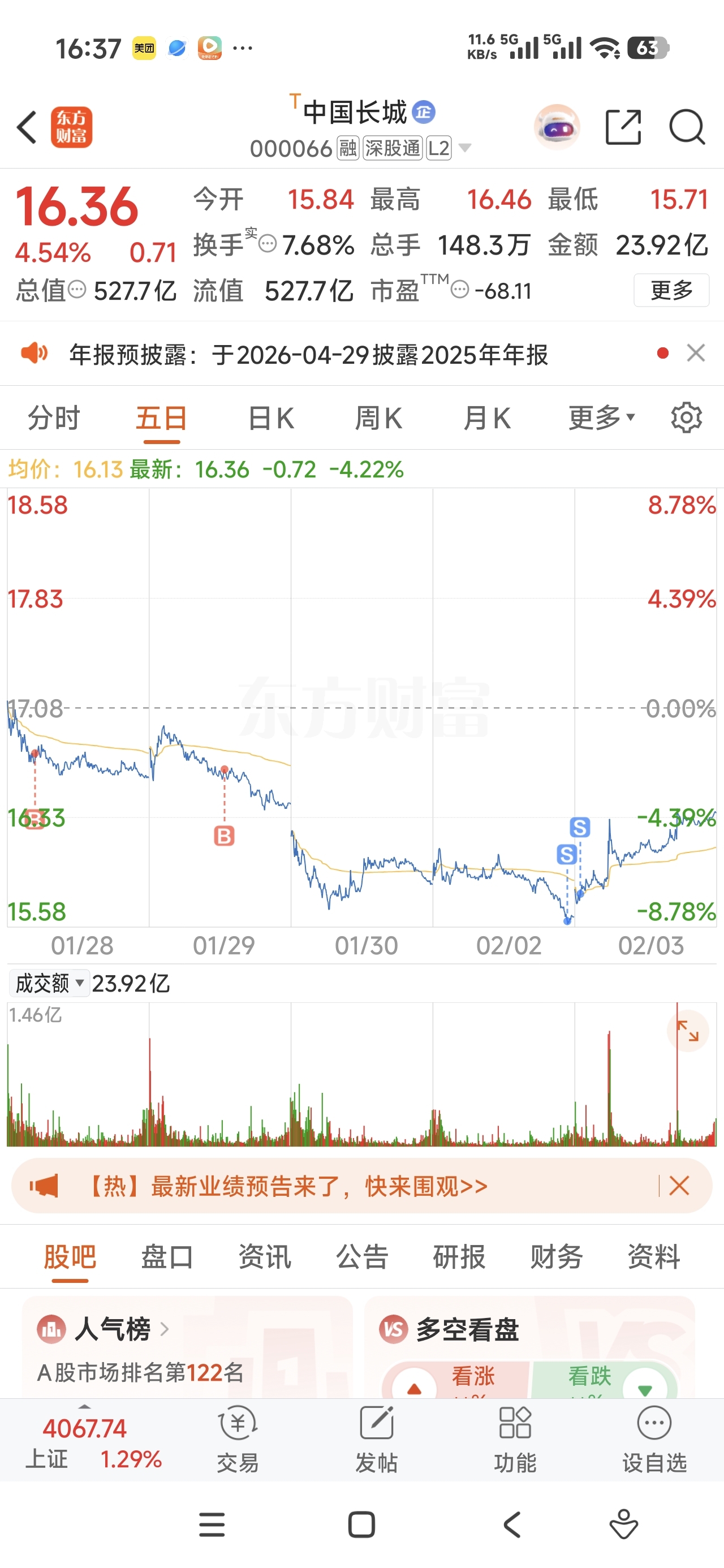 $中国长城(SZ000066)$ 你们开心了嘛!!
