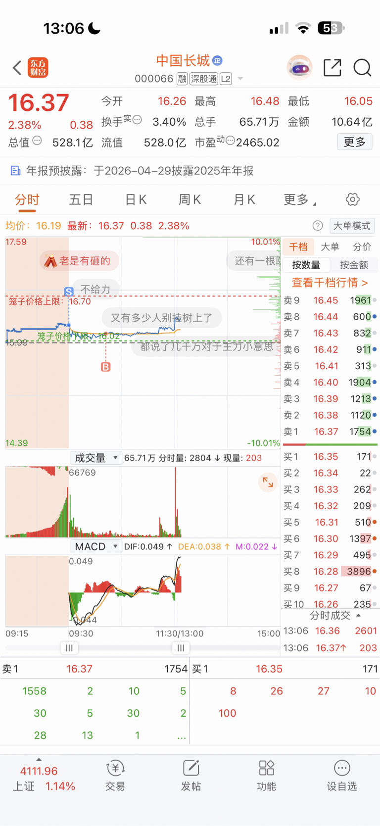 $中国长城(SZ000066)$ 没仓位了,也不敢追,套了10几个点