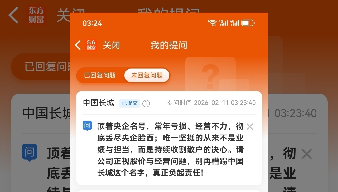 $中国长城(SZ000066)$ 顶着央企名号,年年亏损毫无作为,丢尽央企脸面;唯一坚挺的从来不是业绩,而是收割散户的决心。别糟蹋中国长城这个名字了,改名吧!别再丢央企的人,央企的脸都被你们丢尽了!