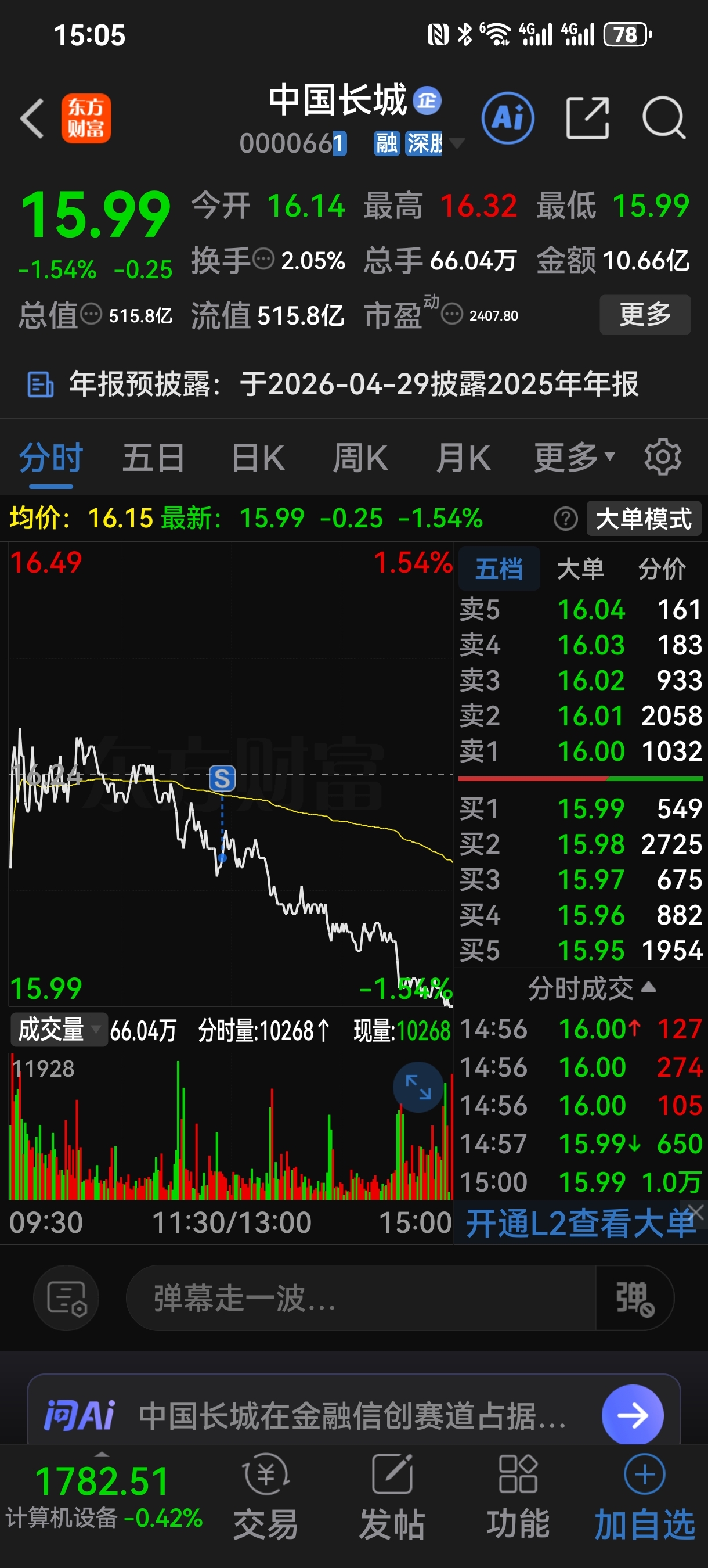 $中国长城(SZ000066)$ 亏5万走了,希望明天大涨