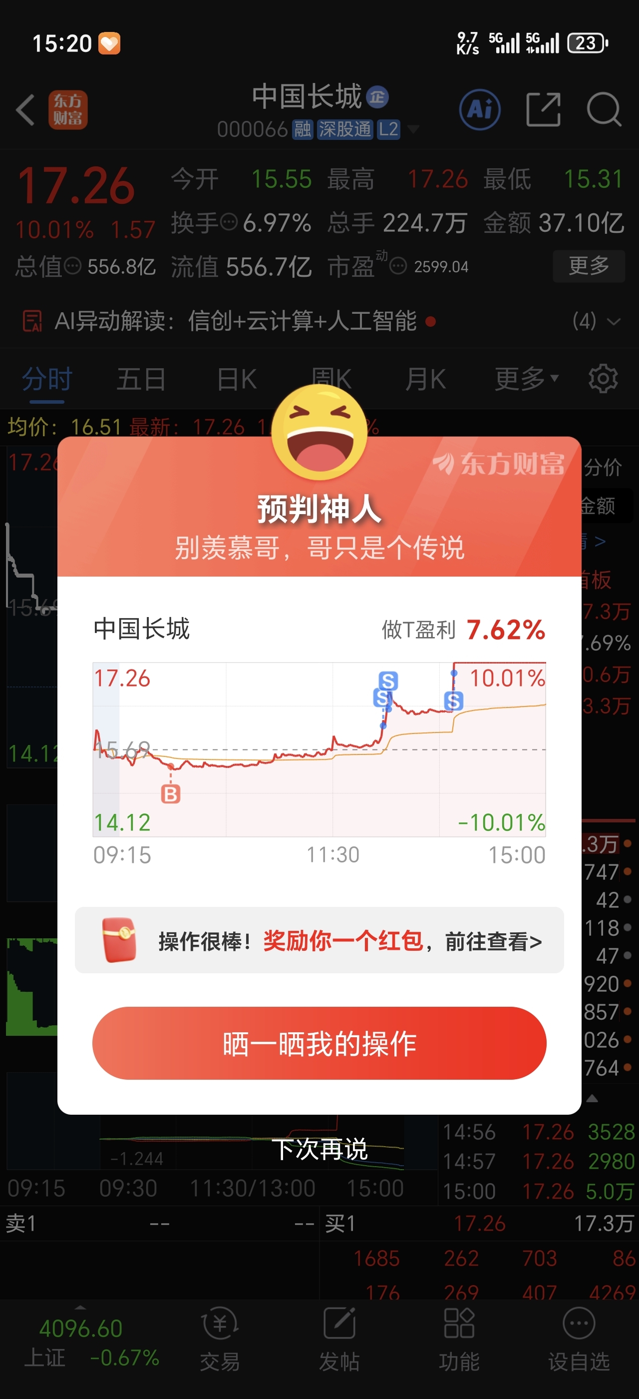 $中国长城(SZ000066)$ 做T无语,不该减仓