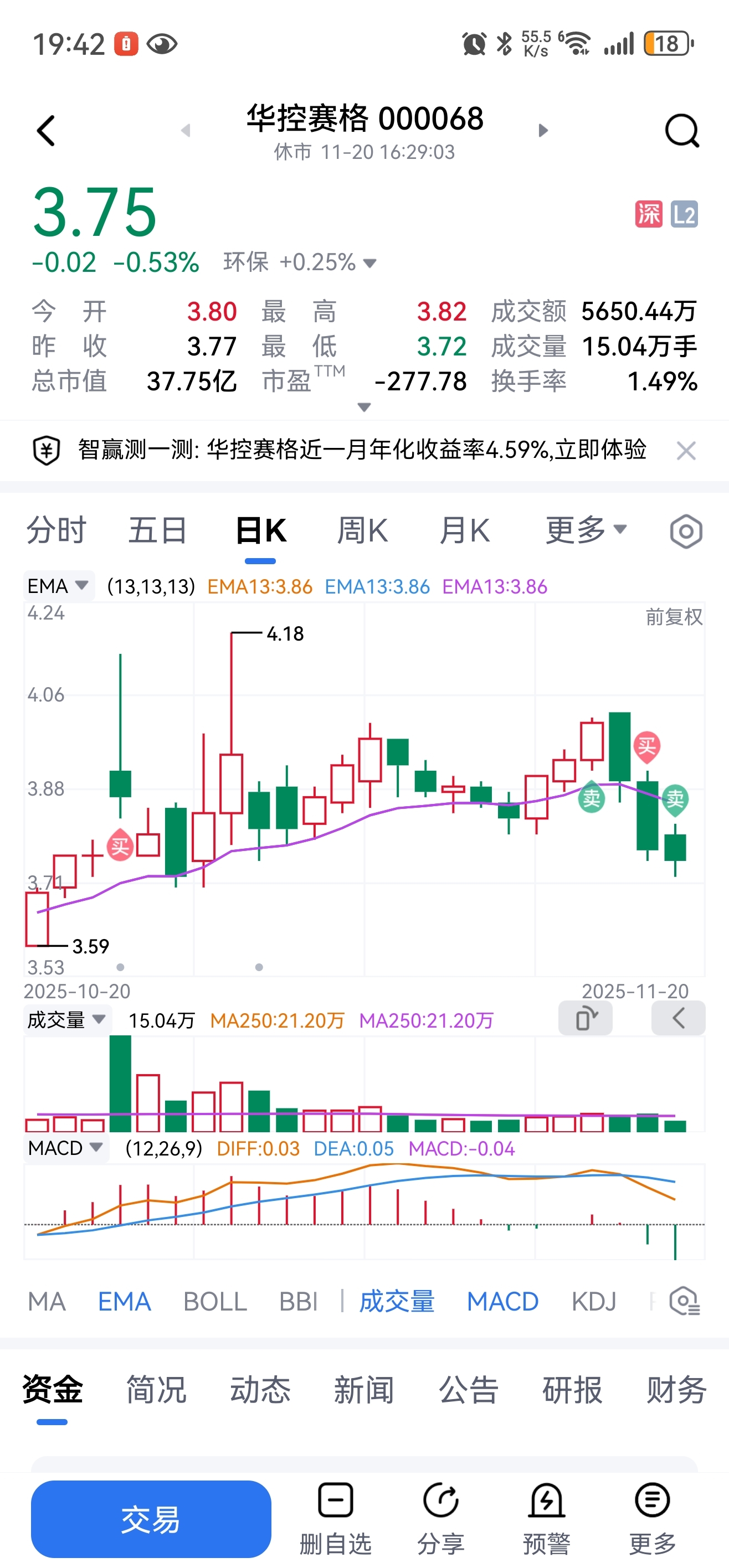 $华控赛格(SZ000068)$ 这个票真的不能碰,昨天我以为跌到底了,我又全仓进来了,结果今天还是继续往下跌,我又清仓了,进来一次亏一次。