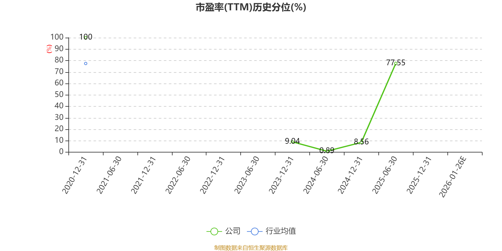 市盈率、市净率为负时,不显示当期分位数,会导致折线图中断。