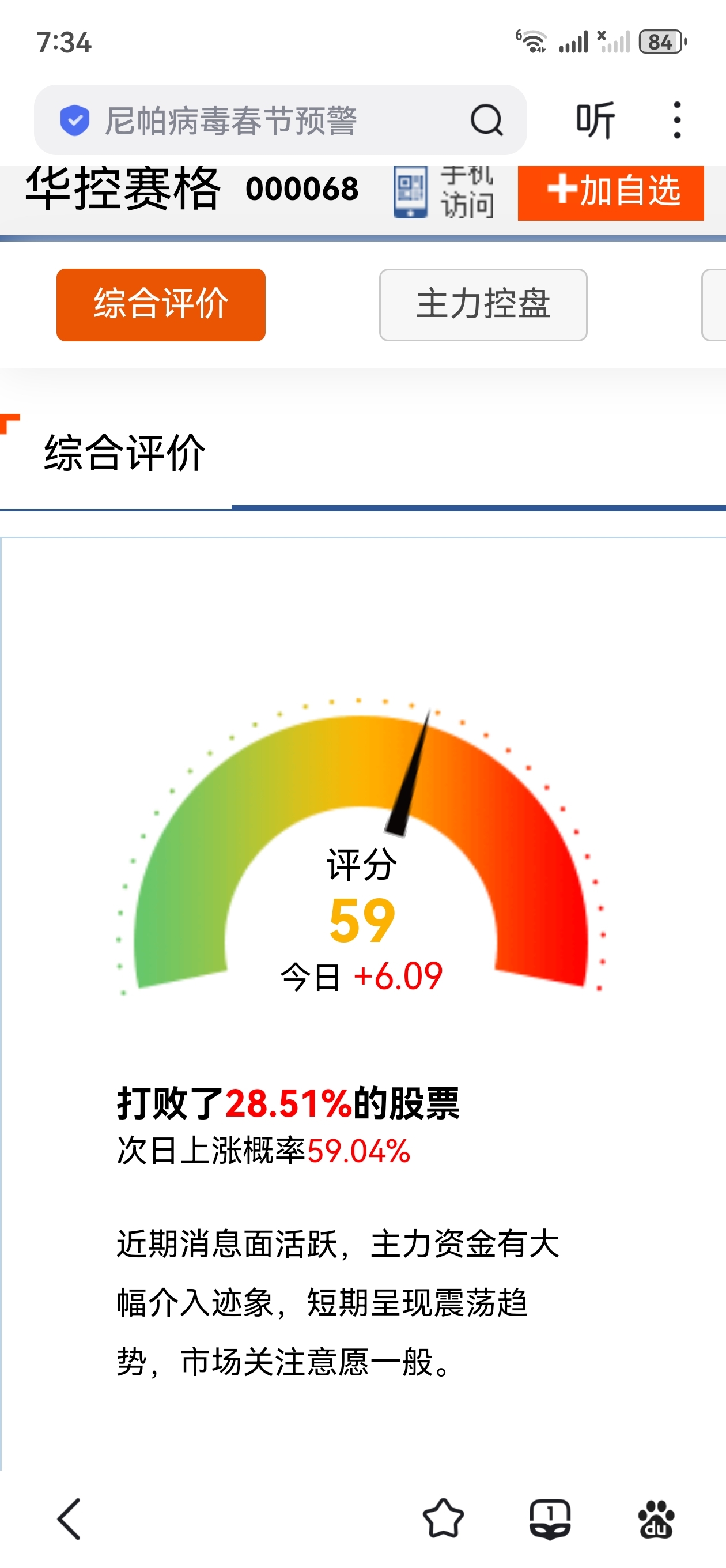 看图说话:今日华控赛格虽然是下跌,但打开主力资金监控上显示“主力资金大幅净流入的