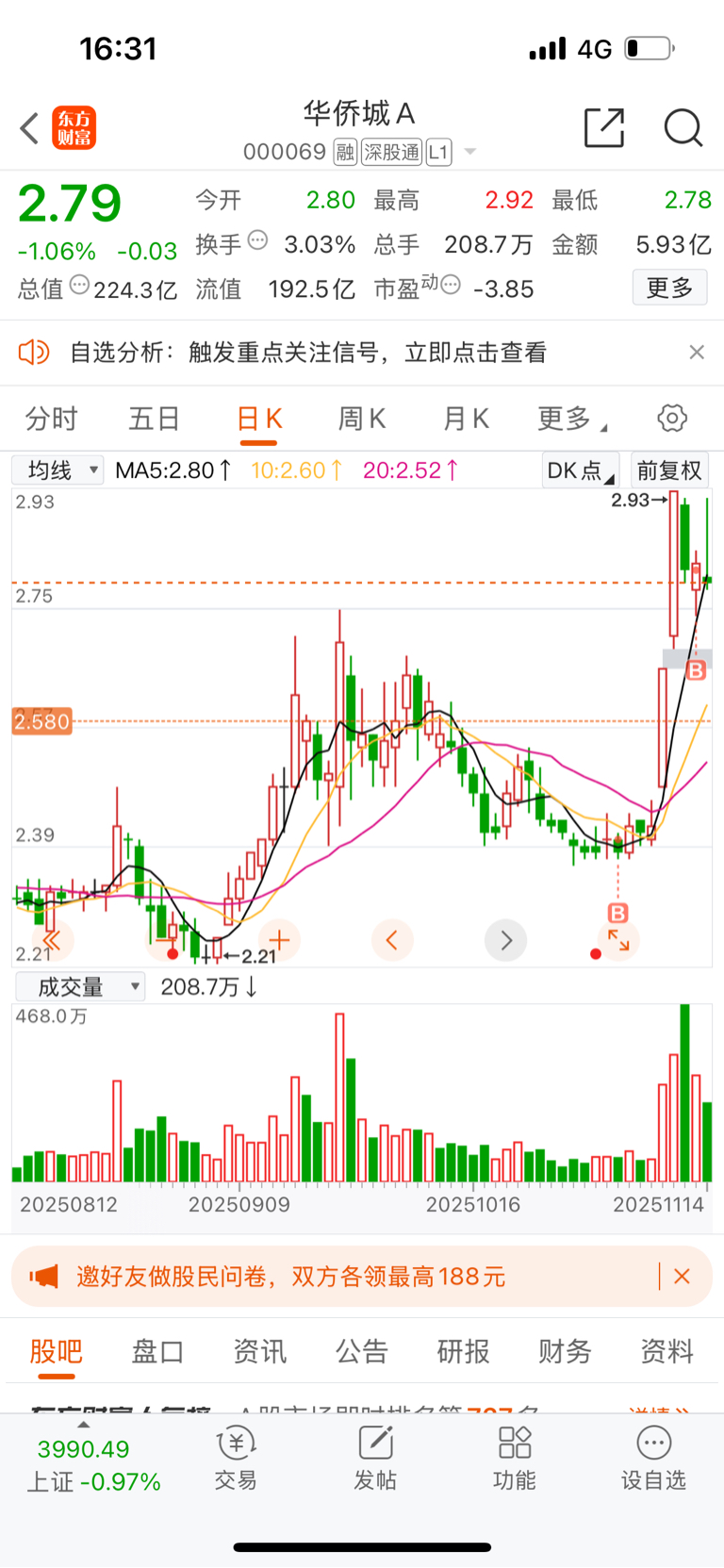 $华侨城A(SZ000069)$ 不给力,飞5主力能不能跌停