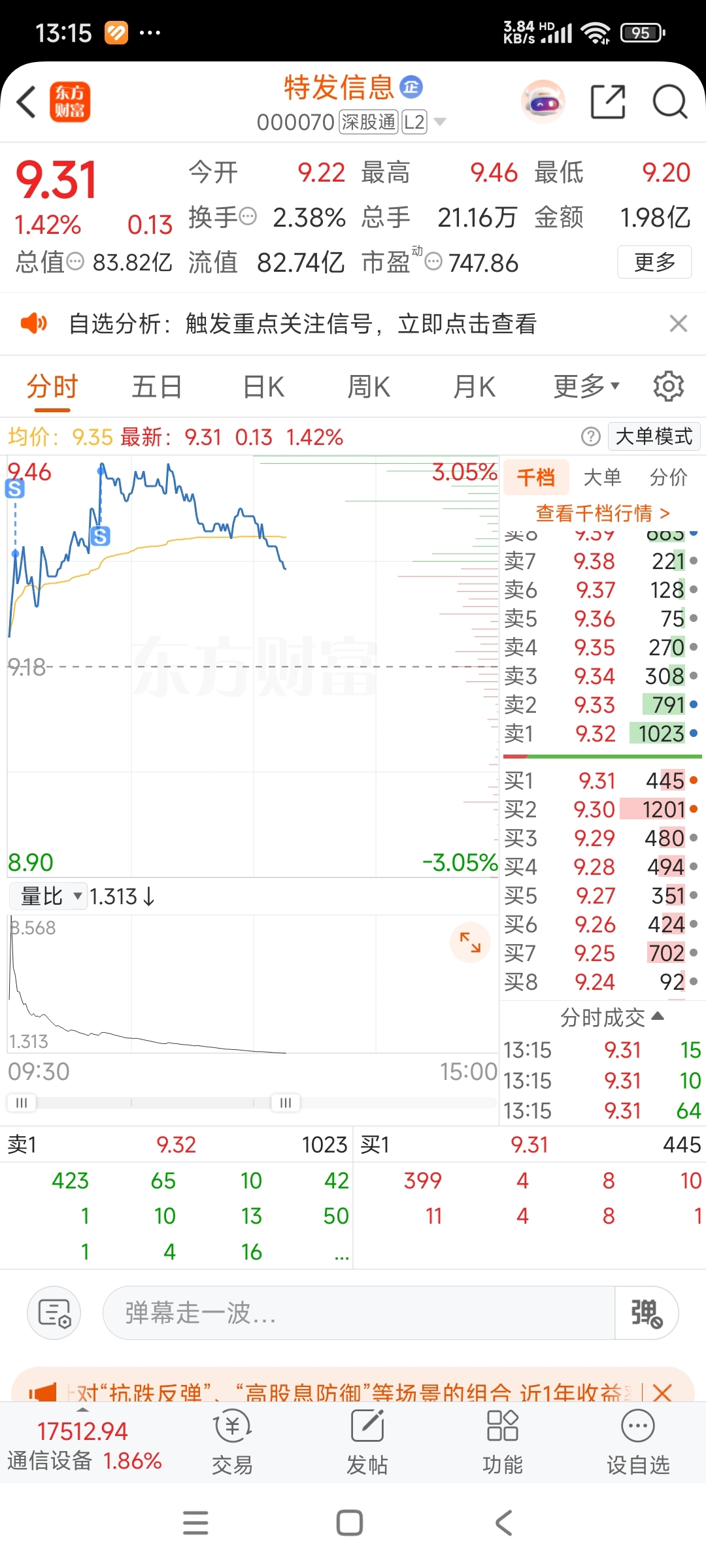 $特发信息(SZ000070)$ 阿斗我卖了,你可以拉了……