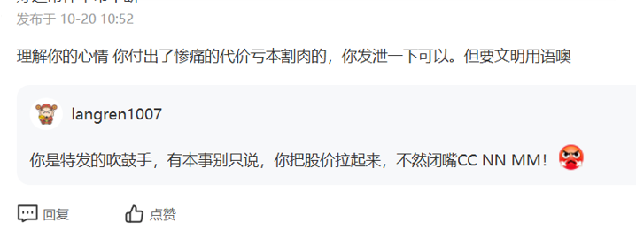 温馨提示: 1.根据《证券法》规定,禁止编造、传播虚假信息或者误导性信息,扰乱证券市场;2.用户在本社区发表的所有资料、言论等仅代表个人观点,与本网站立场无关,不对您构成任何投资建议。用户应基于自己的独立判断,自行决定证券投资并承担相应风险。《东方财富社区管理规定》